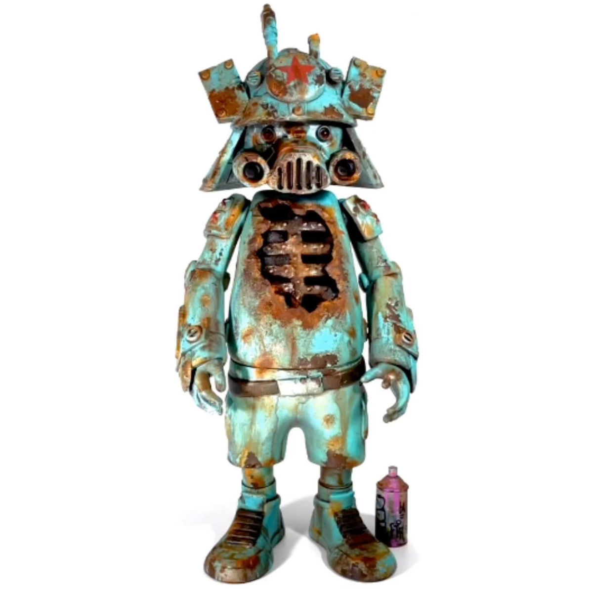 DrilOne is a New Yorker at heart and a San Franciscan by location. On the East Coast, he painted only 2d work; on the west coast, toys and other 3D objects are his preferred canvas. He began working with vinyl in 2005, and soon after stumbled upon the formula that would serve as his signature style. By taking a playful object and distressing it to, quite literally, its breaking point, Dril comments on oblivion, transience, and re-birth. Dril says simply: “I love rust, decay, history, ruins, military, skulls, vintage, and all this makes me who I am.” Art is in Dril’s blood. The son of a painter, he cannot imagine or remember life without drawing. He is a veteran of the New York City public school system and spent most of his life amidst the city’s chaos and creativity. His upbringing and admiration for contemporary, pop and graffiti artists are reflected in his work. The many inspirations that inform his art include abandoned amusement parks, insane asylums and old military bunkers. Dril has made a name for himself with his instantly recognizable visual expression, and his sought-after figures can be seen in art galleries and collections around the world. Standouts among Stationed out of our Mothership in Philadelphia we are Invading this planet to bring you toys. Watch the skies for fresh vinyl releases by amazing designers and join our interplanetary cause to replace this greasy marble's inhabitants with art loving Martians. You think they will plop down a mothership next to the local Walmart? Maybe set a saucer on the Apple Glass Cube on 5th Ave? Or will a little green dude walk into Starbucks, say, “Greetings Earthling!” and proceed to order a Pumpkin Spiced Latte!? — don’t be silly. Our invasion will take form of collectable art known as designer toys. We've scoured this planet for it's finest artists and creatives to define the vessels of our mind control devices. Each of limited quantity and premium quality meant to collect and bring joy, these "toys" are a perfect means to infiltrate. At first it's just one art toy, a cool vinyl figure that speaks to your style, then another, and another. Soon you won't be able to stop and WE will take credit for that! The winds of change have been blowing and there's a shadowy figure atop the mountain. After a long wait the clouds part to reveal the next challengers in the form of an Apocalyptic Robot Samuraii. Standing 6" tall this Futuristic Mech Warrior Street Artist is ready for anything with his Paint Roller and Spray Can Accessories.