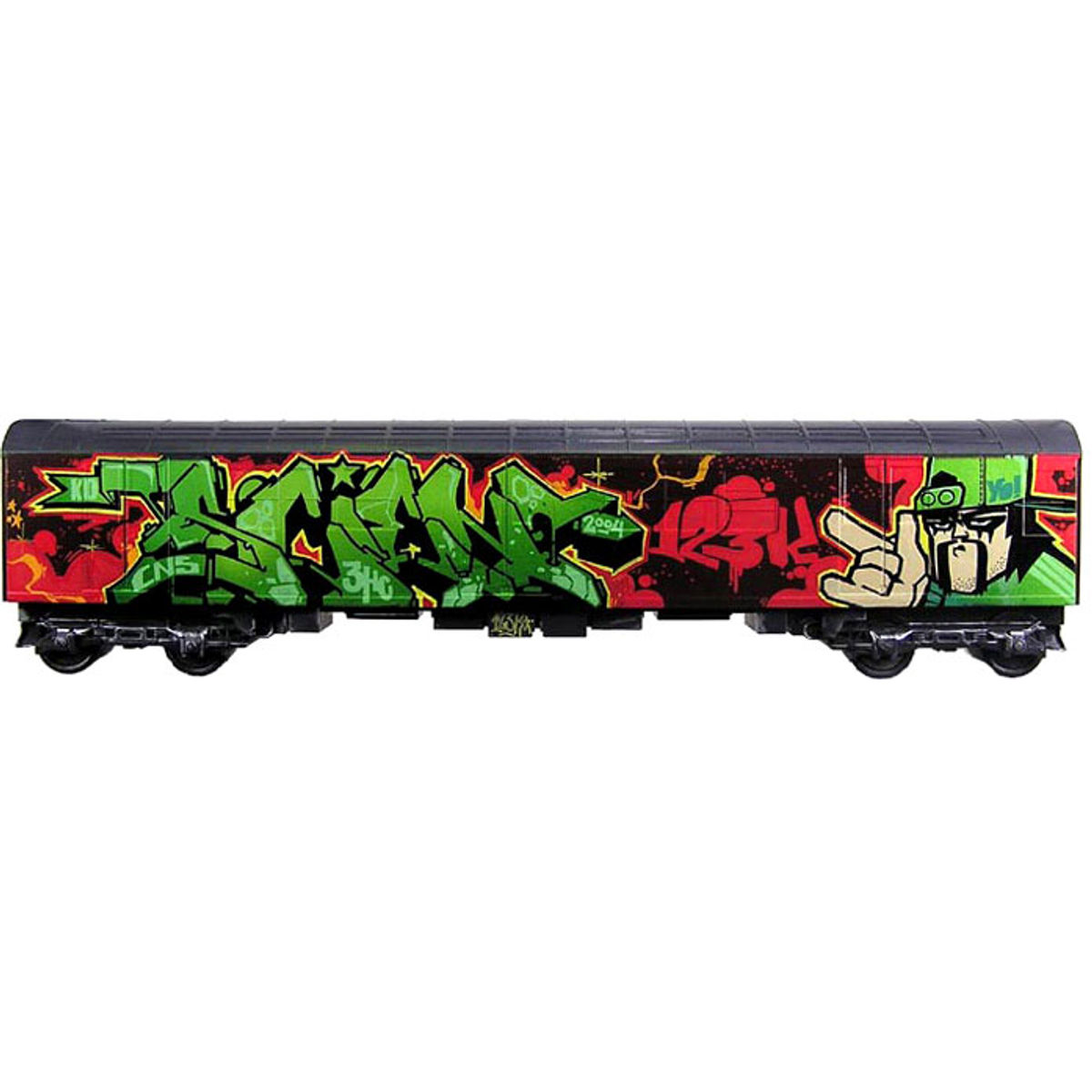 Created, sculpted, and produced by Bigshot Toyworks, the All-City Style Train was tremendously popular when we first introduced it in 2005. Supported by multiple custom shows in New York, San Francisco, London, Paris, Moscow, and Melbourne, the All-City Style Trains were embraced by both the graff community and the designer toy community as an excellent platform figure for artists of all styles. At 20" long, it's a large canvas...and with connector pieces included to join two trains together, it provides the artist with a lot more room to work than the average platform toy. Over 150 of the World's Leading Artists and Designers have come together to celebrate the New York City Subway Centennial with Tag the System NY. Each artist was given a blank subway car, and asked to lend their own creative style and vision to designing their own unique interpretation of a New York City Subway Car. The cars, almost 2 foot wide, were designed by Klim K and manufactured by Drastic Plastic. The artists participating include a very diverse set of styles, from old school to current grafitti artists, to comic and animation artists, to sculptors and even traditional companies including Nike and the Mattel Hot Wheels Team.