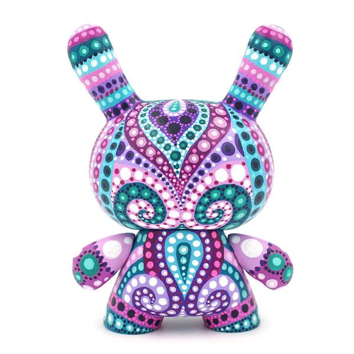 The toy is based on a rabbit figure with distinctive tubular ears. The origin of the name Dunny came from a combination of street slang and one of the early "Devil Bunny" prototypes. The Dunny is sold in four sizes - 3", 5", 8" and 20". The toy has three points of articulation; a 360 degree rotational head and two arms. An artist card or sticker is also included with the 3" Dunny from a series. Most 3" Dunnys and some 8" Dunnys are normally sold as "blind assortment"; the figure is packaged inside a sealed foil wrapper, such that the buyer is not able to see which figure and accessories they are buying. Sealing the figure prevents people from opening and peeking in the boxes and buying only the figures they want. Most Dunnys are packaged inside a clear plastic bag in addition to the foil wrapper. In the second-hand market, this assures the buyer that the article was never on display and is in a "new" condition. With the success of vinyl toys as a medium for expression, many fans and artists have put their own design onto blank Dunnys. MP Gautheron is a French artist renowned for her vibrant and intricate paintings, sculptures, and custom art toys. Based in Rennes, France, she has been immersed in art from a young age, influenced by her mother, an art professor and painter. This early exposure led her to pursue formal studies in graphical design and plastic arts in Paris, culminating in a Master’s degree in plastic art/illustration.   Gautheron’s artistic universe blends elements of skulls, animals, nature, and intricate patterns. Her work often explores the natural process of death, aiming to help viewers accept it by embellishing and reinterpreting its imagery. She employs a mix of realistic depictions and fantastical configurations to tell stories, frequently using bold colors to infuse life into her subjects. Kidrobot is a well-known American designer toy company, and while they have historically been more focused on online retail, they have also had a presence with physical stores in certain locations. These stores are often considered flagship locations where collectors and art toy enthusiasts can experience Kidrobot’s offerings in person, including their iconic limited-edition toys, collectibles, and art pieces.
