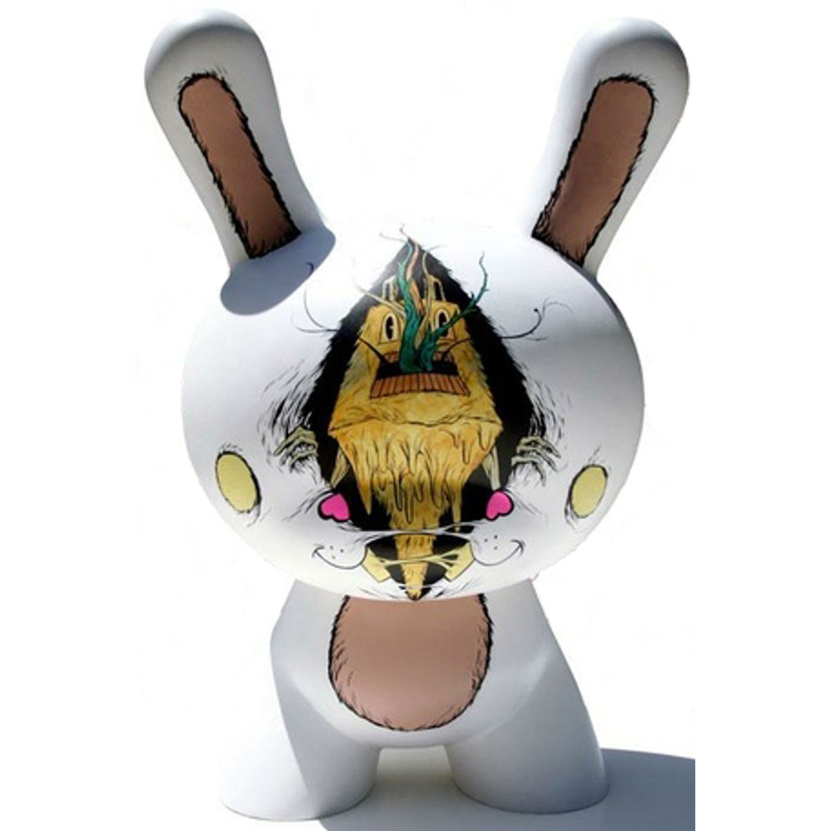 The toy is based on a rabbit figure with distinctive tubular ears. The origin of the name Dunny came from a combination of street slang and one of the early "Devil Bunny" prototypes. The Dunny is sold in four sizes - 3", 5", 8" and 20". The toy has three points of articulation; a 360 degree rotational head and two arms. An artist card or sticker is also included with the 3" Dunny from a series. Most 3" Dunnys and some 8" Dunnys are normally sold as "blind assortment"; the figure is packaged inside a sealed foil wrapper, such that the buyer is not able to see which figure and accessories they are buying. Sealing the figure prevents people from opening and peeking in the boxes and buying only the figures they want. Most Dunnys are packaged inside a clear plastic bag in addition to the foil wrapper. In the second-hand market, this assures the buyer that the article was never on display and is in a "new" condition. With the success of vinyl toys as a medium for expression, many fans and artists have put their own design onto blank Dunnys. Up until I was 21 years old, I didn’t care about the Internet. But now, 15 years later, I can pretty much credit the Internet with everything leading up to this article. I tried traditional routes of applying for art jobs back in the mid 90’s. I sent out portfolios and made multiple attempts at getting my comics published, but those only led to rejection. Around that time I started blindly experimenting with the Internet out of boredom and realized immediately that I could anonymously spread around my art on every message board and social networking site without having to face the fear of rejection because I wasn’t trying to really DO anything with my art. I just wanted people to see it in hopes of getting some feedback, even if that feedback was critical and hateful…which it was. But it was helpful. Continuing to jump on as many social networking sites as they appeared, and disciplining myself to actually UTILIZE them was, for me, the most important thing I did in establishing the art career that I have now. So when I got asked by Juxtapoz to curate this Halloween issue, and to additionally be featured and interviewed for it,