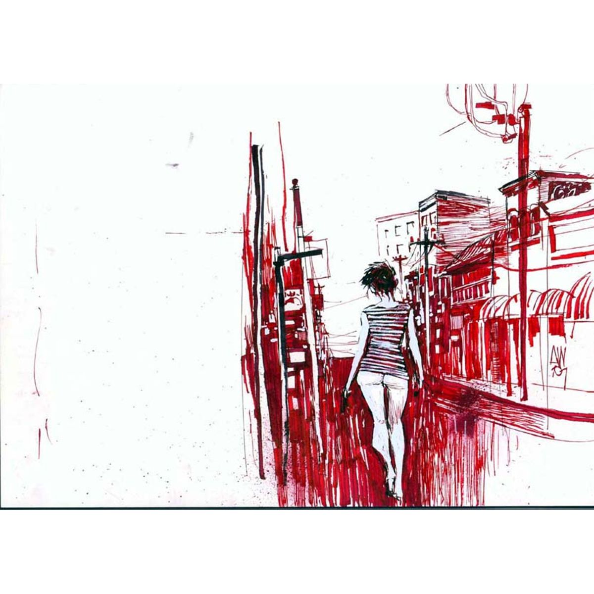 He was born in Australia, and now resides in Australia and The United States. He lives with his wife, his two sons, and one stinky cat. Ashley has been a professional illustrator for over ten years, and has worked for most major entertainment companies including Dreamworks SKG, Warner Bros., Random House, Marvel Comics, McFarlane Entertainment, IDW, and Konami. His illustration technique is a combination of traditional painting techniques, coupled with digital photography and graphic software. Currently Ashley divides his time between operating his entertainment company 7174 TYP LTD., creating properties for film, comics, books, and toys; and commercial projects including the Official Metal Gear Solid comic for IDW Publishing, and commissions from the advertising- and entertainment industry. Use of liquid ink as a material to create art, typically by applying it to a surface like paper with a pen or brush, allowing artists to produce drawings, paintings, or calligraphy by utilizing its fluidity and color properties to form images or text; essentially, it's a versatile tool for creating artwork through the application of colored liquid