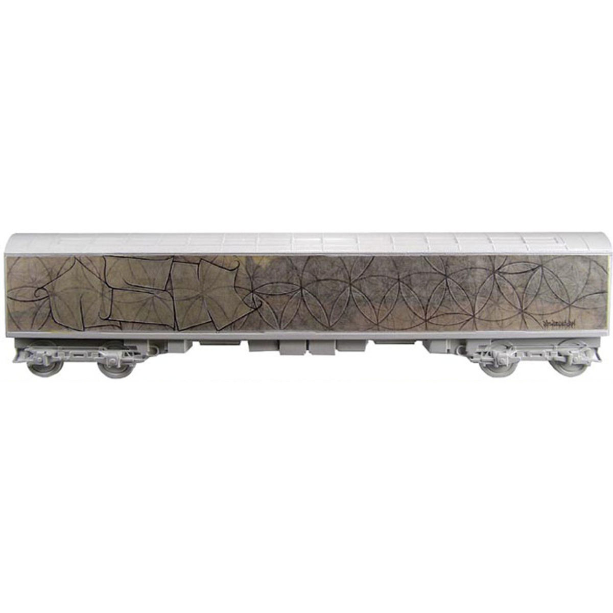 Created, sculpted, and produced by Bigshot Toyworks, the All-City Style Train was tremendously popular when we first introduced it in 2005. Supported by multiple custom shows in New York, San Francisco, London, Paris, Moscow, and Melbourne, the All-City Style Trains were embraced by both the graff community and the designer toy community as an excellent platform figure for artists of all styles. At 20" long, it's a large canvas...and with connector pieces included to join two trains together, it provides the artist with a lot more room to work than the average platform toy. Over 150 of the World's Leading Artists and Designers have come together to celebrate the New York City Subway Centennial with Tag the System NY. Each artist was given a blank subway car, and asked to lend their own creative style and vision to designing their own unique interpretation of a New York City Subway Car. The cars, almost 2 foot wide, were designed by Klim K and manufactured by Drastic Plastic. The artists participating include a very diverse set of styles, from old school to current grafitti artists, to comic and animation artists, to sculptors and even traditional companies including Nike and the Mattel Hot Wheels Team.