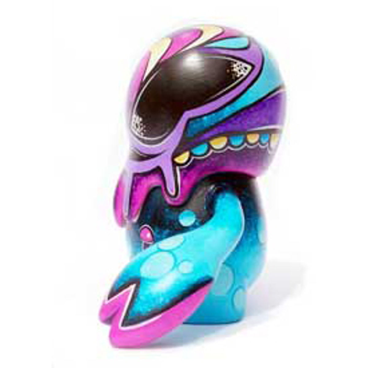 Brent Nolasco is renowned for his imaginative and emotionally resonant designer toys, sculptures, and paintings. His work seamlessly blends elements of the surreal, grotesque, and whimsical, often exploring themes of transformation, mortality, and personal mythology. Nolasco’s art is characterized by a fusion of “cute characters with nightmarish backdrops,” creating pieces that are both endearing and unsettling. He employs a diverse palette and mixed media techniques to craft unique textures and forms, reflecting his belief in constant evolution and the interplay between life and art