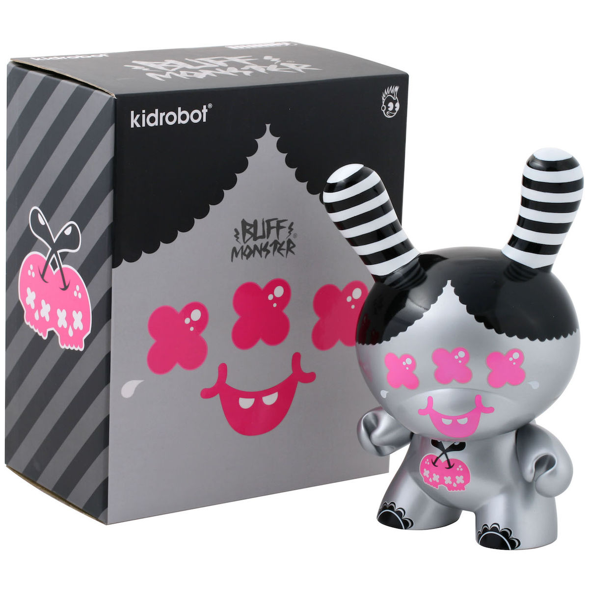 Buff Monster lives in Hollywood and cites heavy metal music, ice cream and Japanese culture as major influences. The color pink, a symbol of confidence, individuality and happiness, is present in everything he creates. Buff Monster’s creative endeavors began by putting up thousands of hand-silkscreened posters across Los Angeles and in far-away places. His frequent poster missions developed into a productive street art career, and he now works on fine art paintings, collectible toys and select design projects. He paints on wood, taking great care to create his images as flat as possible, and his work has been shown in galleries worldwide, often accompanied by large installations. Buff Monster has released numerous signature vinyl toys through MINDstyle, and has many other projects in the works with leading toy companies. His art has been published in a variety of magazines, websites, newspapers and books, including Juxtapoz, Paper, Nylon, Cool Hunting, Angeleno, The Los Angeles Times, LA Weekly, The New York Times, and many more. Buff Monster works tirelessly day and night to spread happiness, joy and a love of pink. Founded in 2002 by designer Paul Budnitz, Kidrobot is the world's premier creator of limited edition art toys and apparel. Kidrobot creates toys, apparel, accessories, and other products in collaboration with many of the world's most talented artists and designers. The products sold at Kidrobot are the centerpieces of a global movement that exemplifies the cutting edge of both pop art and mass culture. Many Kidrobot toys, such as Dunny, MUNNY, and Frank Kozik's Labbits and Mongers, attract huge followings. Artists that work with Kidrobot have gained celebrity status-these include USA artists Frank Kozik, Tim Biskup, Huck Gee, Joe Ledbetter, Tristan Eaton, Paul Budnitz, and Tara McPherson; the German design collective eBoy; Japan's Devilrobots & Mad Barbarians; French street artists Tilt & Mist; the UK's TADO and ilovedust; Australia's Nathan Jurevicius; Argentina's DOMA; and many, many others. Kidrobot also regularly collaborates with many of the world's top brands to create unique limited editions products. Past collaborations include Marc Jacobs, Visionaire Magazine, Barneys New York, The Standard Hotels, Playboy, Burton, Nike, Lacoste, Nooka, Matt Groening & more. A blend of sculpture and popular art, many of Kidrobot's exclusive toys are extremely rare and collectible. Artists often create a series of only a few hundred The toy is based on a rabbit figure with distinctive tubular ears. The origin of the name Dunny came from a combination of street slang and one of the early "Devil Bunny" prototypes. The Dunny is sold in four sizes - 3", 5", 8" and 20". The toy has three points of articulation; a 360 degree rotational head and two arms. An artist card or sticker is also included with the 3" Dunny from a series. Most 3" Dunnys and some 8" Dunnys are normally sold as "blind assortment"; the figure is packaged inside a sealed foil wrapper, such that the buyer is not able to see which figure and accessories they are buying. Sealing the figure prevents people from opening and peeking in the boxes and buying only the figures they want. Most Dunnys are packaged inside a clear plastic bag in addition to the foil wrapper. In the second-hand market, this assures the buyer that the article was never on display and is in a "new" condition. With the success of vinyl toys as a medium for expression, many fans and artists have put their own design onto blank Dunnys.
