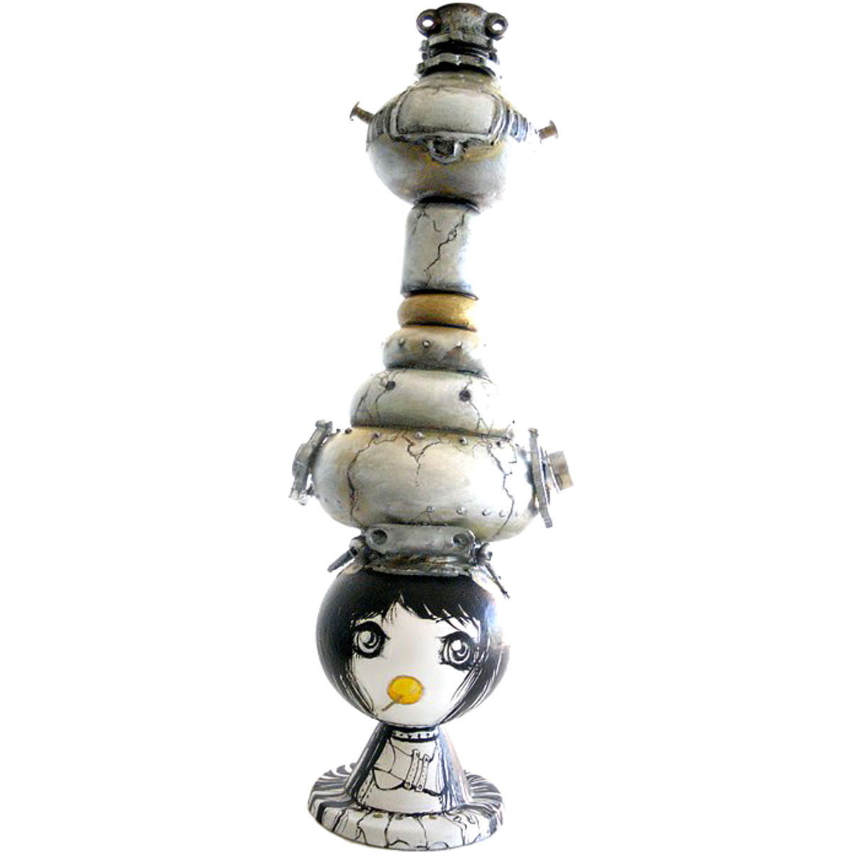 Jibibuts were released in 2009 and are stocked by leading museums, galleries, art, design and gift boutiques worldwide. 12 to collect plus 2 extra special rare gold or silver editions. One display case of 12 guarantees a complete set. 2.5 – 3.5 inches tall. Made from 100% sustainably harvested rubber wood. Jibibuts sp., are long-lived forest dwellers native to the west coast of Carrara Island. Found mostly in moist temperate climates, they scurry about the forest floor consuming all manner of fallen leaf litter. Jibibuts sp., are important biological indicators of forest health. Specimens discovered by the Biological Institute of Carrara. Males are colored. Females are brown-toned About the wood we use: Jibibuts are made from sustainably harvested rubber tree wood that would otherwise go to waste. Rubber trees are planted for their rubber but after about 20 years, their rubber yields start to diminish. We use this beautiful wood for all our wooden products, thus saving it from the fire pit. Camilla d’Errico is an Italo-Canadian artist who has been making waves in the fine art and comic industries with her manga-influenced style. Despite having amassed a wide artistic background in animation, fine arts, illustration and graphic design her passion has always been in comics, notably manga. Camilla resides in Vancouver, BC, where she continues her work in comics, creating her acclaimed original series – Tanpopo – based on literature. Ever the prolific artist, Camilla lives the double life of comic artist/creator and Pop Surrealist painter. Her ability to seamlessly weave comic art and manga with surrealist elements has allowed her to attain great renown in her main fields, while expanding her horizons to include fashion, merchandise and collectible designer art toys.