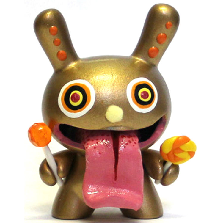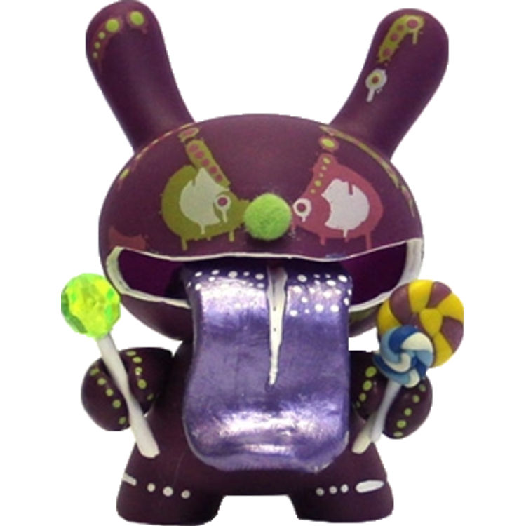 The toy is based on a rabbit figure with distinctive tubular ears. The origin of the name Dunny came from a combination of street slang and one of the early "Devil Bunny" prototypes. The Dunny is sold in four sizes - 3", 5", 8" and 20". The toy has three points of articulation; a 360 degree rotational head and two arms. An artist card or sticker is also included with the 3" Dunny from a series. Most 3" Dunnys and some 8" Dunnys are normally sold as "blind assortment"; the figure is packaged inside a sealed foil wrapper, such that the buyer is not able to see which figure and accessories they are buying. Sealing the figure prevents people from opening and peeking in the boxes and buying only the figures they want. Most Dunnys are packaged inside a clear plastic bag in addition to the foil wrapper. In the second-hand market, this assures the buyer that the article was never on display and is in a "new" condition. With the success of vinyl toys as a medium for expression, many fans and artists have put their own design onto blank Dunnys. This is a limited edition of 100 custom Candy Licker Dunnys to Match a Song I did With Wu Tang Clans Method man .. Dunnys come with a CD With 2 Tracks feat. Shawn Wigs & Method Man . . They Are basically all Different no one is the same But Also they are Basically the same ...