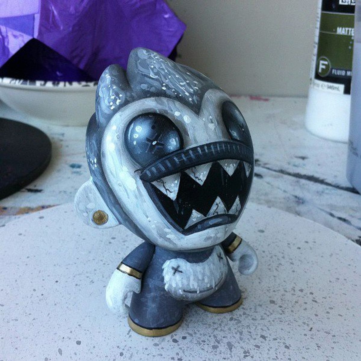 The Foomi is a miniature version of Kidrobot’s customizable vinyl figures, designed to inspire creativity and artistic expression. Standing at approximately 2 inches tall, Foomi features movable joints and a smooth surface, making it an ideal canvas for customization. Artists and enthusiasts can personalize Foomi using various mediums such as paint, markers, stickers, or other decorative elements. This DIY approach allows for a wide range of unique and personalized designs, contributing to the vibrant culture of designer toys. Chris is a mixed media artist from Vancouver, Canada. Born and raised in Calgary, Chris grew up pulling influence from the fairgrounds of the Stampede, the train yards of rural Alberta, and the cure from boredom that Mad & Cracked Magazine provided. Chris has taken his interest in graffiti, cartoons & children’s books, and placed it all in the artistic blender creating a hybrid of styles. His works tend to focus on themes of Love, Lust, Nature, Manic joy & Heartbreak. Chris’ work has a slightly goofy and jaded sense of humor; a laugh to keep from crying sense of mania in rich color and dark tones. A reaction to the good & bad things that life can sometimes hand you…