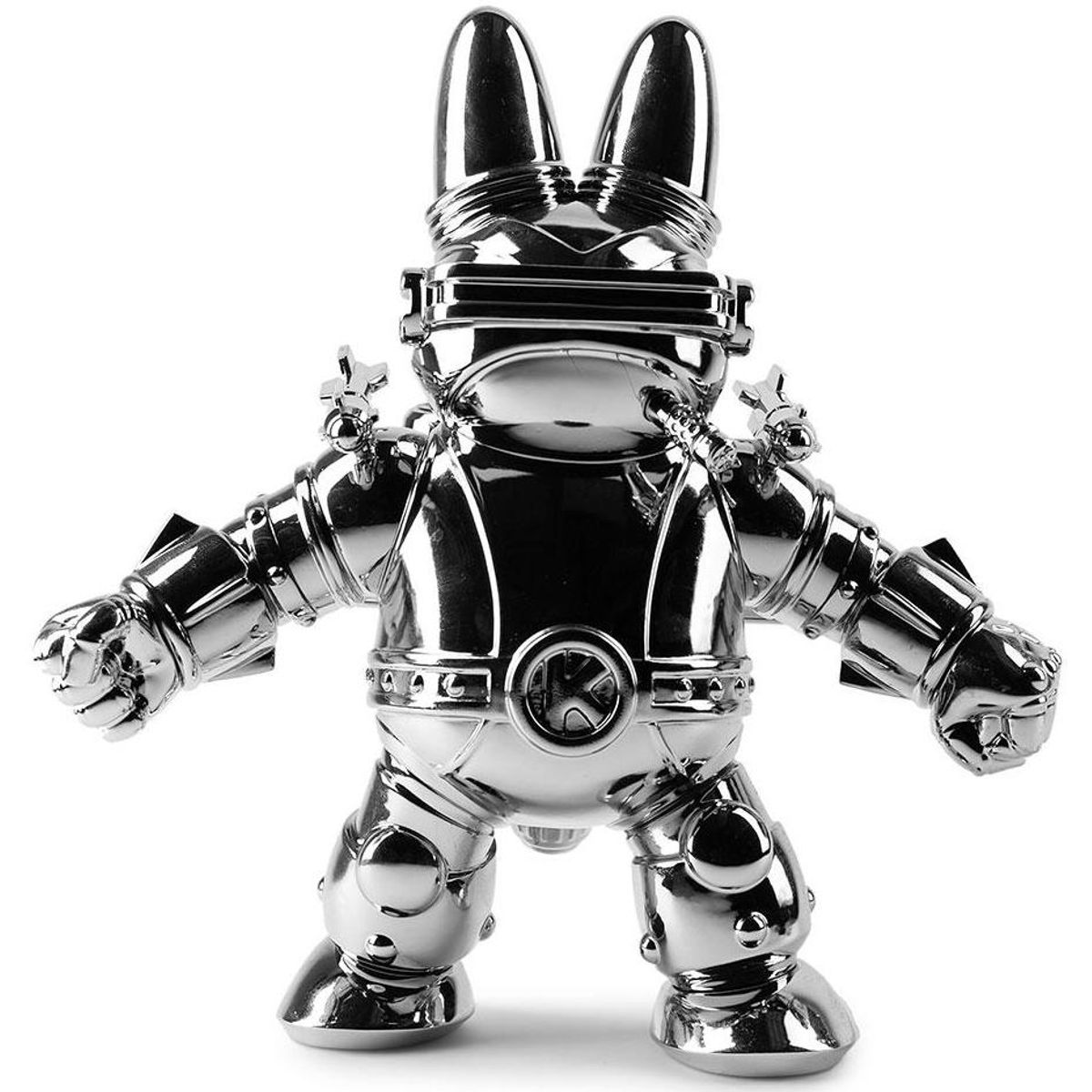 Frank Kozik was born in Madrid, Spain in 1962 . At the age of 14 he moved to the United States and settled in Austin, Texas. Credited with single handedly reviving the “lost” art of the concert poster, his creative career rose largely out of his enthusiasm for Austin’s growing underground punk rock scene in the mid-eighties. Starting with black and white flyers for friends’ bands posted on telephone poles, his reputation grew as an artist whose work was graphically compelling as well as culturally gripping. Kozik is based in San Francisco, California, where he produces artwork, toys and graphic design. He formerly managed his own record label, Man’s Ruin Records (1995-2001). Under which, he released over 220 singles and full length albums including the first Queens of the Stone Age single. He has produced artwork for a diverse range of musicians such as Pearl Jam, the Butthole Surfers, Green Day, Neil Young, Sonic Youth, the Melvins and many more. In 1996, he directed Soundgarden’s “Pretty Noose” music video. In 2001 Kozik left the music business and devoted himself full time to fine art and the newly emerging Vinyl Art Toy movement. Since 2001 he has designed over 300 separate toys and art Founded in 2002 by designer Paul Budnitz, Kidrobot is the world's premier creator of limited edition art toys and apparel. Kidrobot creates toys, apparel, accessories, and other products in collaboration with many of the world's most talented artists and designers. The products sold at Kidrobot are the centerpieces of a global movement that exemplifies the cutting edge of both pop art and mass culture. Many Kidrobot toys, such as Dunny, MUNNY, and Frank Kozik's Labbits and Mongers, attract huge followings. Artists that work with Kidrobot have gained celebrity status-these include USA artists Frank Kozik, Tim Biskup, Huck Gee, Joe Ledbetter, Tristan Eaton, Paul Budnitz, and Tara McPherson; the German design collective eBoy; Japan's Devilrobots & Mad Barbarians; French street artists Tilt & Mist; the UK's TADO and ilovedust; Australia's Nathan Jurevicius; Argentina's DOMA; and many, many others. Kidrobot also regularly collaborates with many of the world's top brands to create unique limited editions products. Past collaborations include Marc Jacobs, Visionaire Magazine, Barneys New York, The Standard Hotels, Playboy, Burton, Nike, Lacoste, Nooka, Matt Groening & more. A blend of sculpture and popular art, many of Kidrobot's exclusive toys are extremely rare and collectible. Artists often create a series of only a few hundred Labbiter XK-5, originally named XK-5, a mechano-biological alien AI weapon from Nebula M78. While chasing the space monster Gemular, he suffered a navigation error and crashed into a small community of Labbits on Earth 7, wreaking havoc and killing a small farming Labbit. Feeling guilt for playing a part in his death, XK-5 merged their bodies and minds, restoring life to Labbit and creating a new being - Labbiter XK-5. Since that day, Labbiter XK-5 staunchly defends Earth 7 against aliens and monsters. The vinyl Labbiter XK-5 art figure stands 8 inches tall and comes with four sets of interchangeable hands to "DEFEND FOR FUTURE OF JUSTICE WARIOR ROCKET".