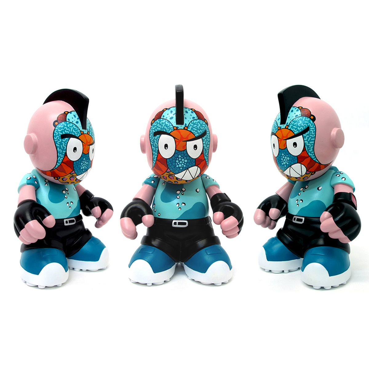 The Kidrobot Mascot, often referred to as “Bot,” is the emblematic figure of Kidrobot, a pioneer in the designer toy industry founded in 2002 by Paul Budnitz. This character embodies the brand’s fusion of art and collectible toys, serving as a canvas for various artistic interpretations. Bot is characterized by its minimalist, robotic design with a rounded head and antenna. Over the years, Kidrobot has released multiple versions of Bot, each showcasing unique themes and collaborations. The Kidrobot Mascot has become a symbol of the designer toy movement, representing the intersection of contemporary art and collectible culture. Its adaptability has allowed artists and designers to imprint their unique styles, making it a beloved figure among collectors and art enthusiasts alike. Sekure D lives and works in Melbourne, Australia. In 2006 Sekure was losing himself in his sneaker addiction and in the ultimate attempt to stand out begun to customize his own sneakers in order to have the most limited of limited releases, the 1 of a kind. What began as a hobby quickly evolved into a part time job painting shoes in his bedroom to the beginnings of a new full time career in design. Sekure cites his love for graffiti, sneakers, comics and cinema as the main driving forces behind the creation of his distinctive style. As well as painting on sneakers Sekure features his artwork on canvas and in conjunction with his three solo shows in Australia and New Zealand he has had work featured in numerous group shows and galleries such as the National Gallery of Victoria, Australia, and the Victoria and Albert Museum, London. During this time Sekure has worked on two collaboration sneakers with the skate footwear brand Globe and been featured in a variety of magazines, websites, newspapers and books including Sneaker Freaker, Sole Collector, The Age and ‘Custom Kicks’. Sekure works tirelessly evolving his style and skill set to ensure there is always