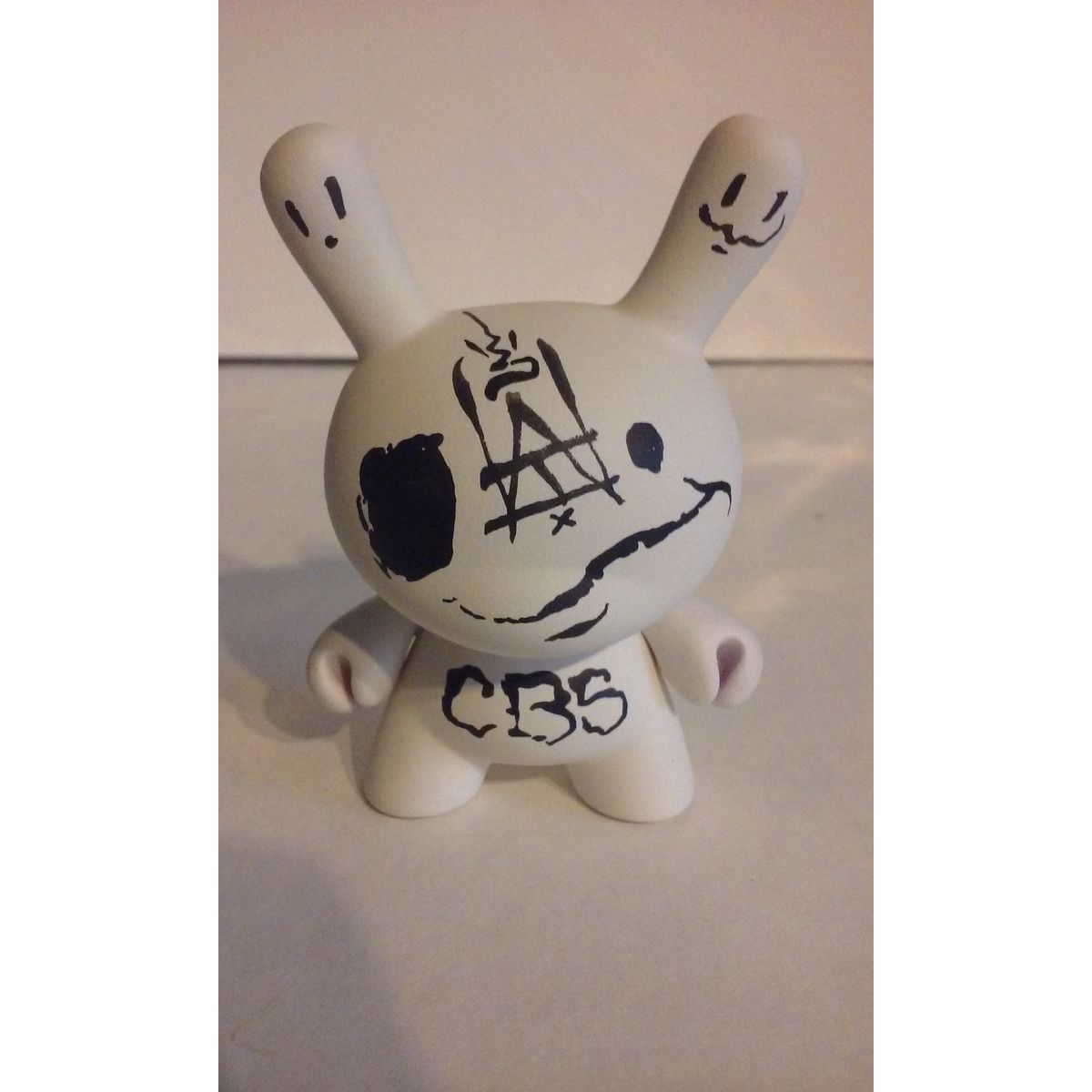 I haven’t always liked stretching canvas and never thought I would be doing it on a regular basis but these days, it has become more of an adventure than a chore. It is the sponge that soaks up all the thoughts going on in my head. Having an overactive imagination since a very young age, it has always made sense to me that any artwork I develop should be composed of these vivid thoughts. What used to take form in crayons and pencil, evolved into pen and ink drawings, spray painted murals and computer graphics, and has further morphed into the acrylic paintings I create these days. My childhood obsessions with Disney cartoons, Lorne Greens’ New Wilderness and books such as Watership Down and The Phantom Tollbooth have become fodder for my work as it develops today. I have become increasingly interested in the rabbit holes we fall down when daydreaming. So many have created worlds in their art in which to escape and inhabit, and for others to enjoy. We have seen glimpses of them in Narnia, Wonderland, Middle Earth, Neverland, and Hanalee. As homage to these types and shadows of other lands, I have attached the all-encompassing title, The toy is based on a rabbit figure with distinctive tubular ears. The origin of the name Dunny came from a combination of street slang and one of the early "Devil Bunny" prototypes. The Dunny is sold in four sizes - 3", 5", 8" and 20". The toy has three points of articulation; a 360 degree rotational head and two arms. An artist card or sticker is also included with the 3" Dunny from a series. Most 3" Dunnys and some 8" Dunnys are normally sold as "blind assortment"; the figure is packaged inside a sealed foil wrapper, such that the buyer is not able to see which figure and accessories they are buying. Sealing the figure prevents people from opening and peeking in the boxes and buying only the figures they want. Most Dunnys are packaged inside a clear plastic bag in addition to the foil wrapper. In the second-hand market, this assures the buyer that the article was never on display and is in a "new" condition. With the success of vinyl toys as a medium for expression, many fans and artists have put their own design onto blank Dunnys.