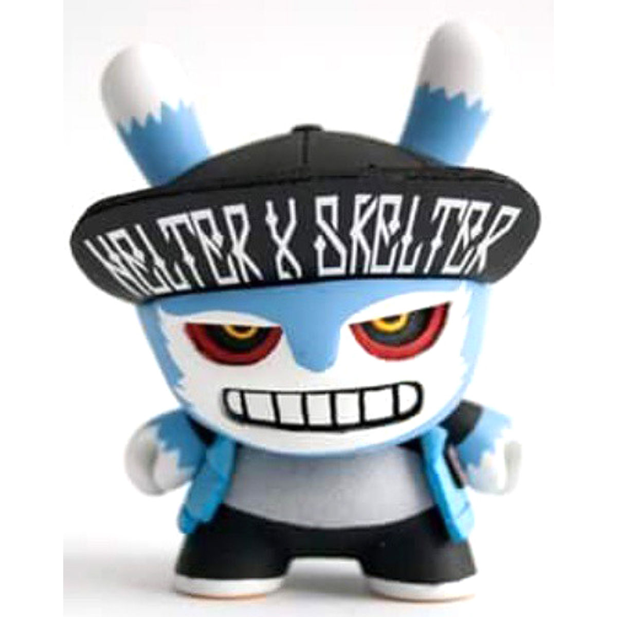 The toy is based on a rabbit figure with distinctive tubular ears. The origin of the name Dunny came from a combination of street slang and one of the early "Devil Bunny" prototypes. The Dunny is sold in four sizes - 3", 5", 8" and 20". The toy has three points of articulation; a 360 degree rotational head and two arms. An artist card or sticker is also included with the 3" Dunny from a series. Most 3" Dunnys and some 8" Dunnys are normally sold as "blind assortment"; the figure is packaged inside a sealed foil wrapper, such that the buyer is not able to see which figure and accessories they are buying. Sealing the figure prevents people from opening and peeking in the boxes and buying only the figures they want. Most Dunnys are packaged inside a clear plastic bag in addition to the foil wrapper. In the second-hand market, this assures the buyer that the article was never on display and is in a "new" condition. With the success of vinyl toys as a medium for expression, many fans and artists have put their own design onto blank Dunnys.