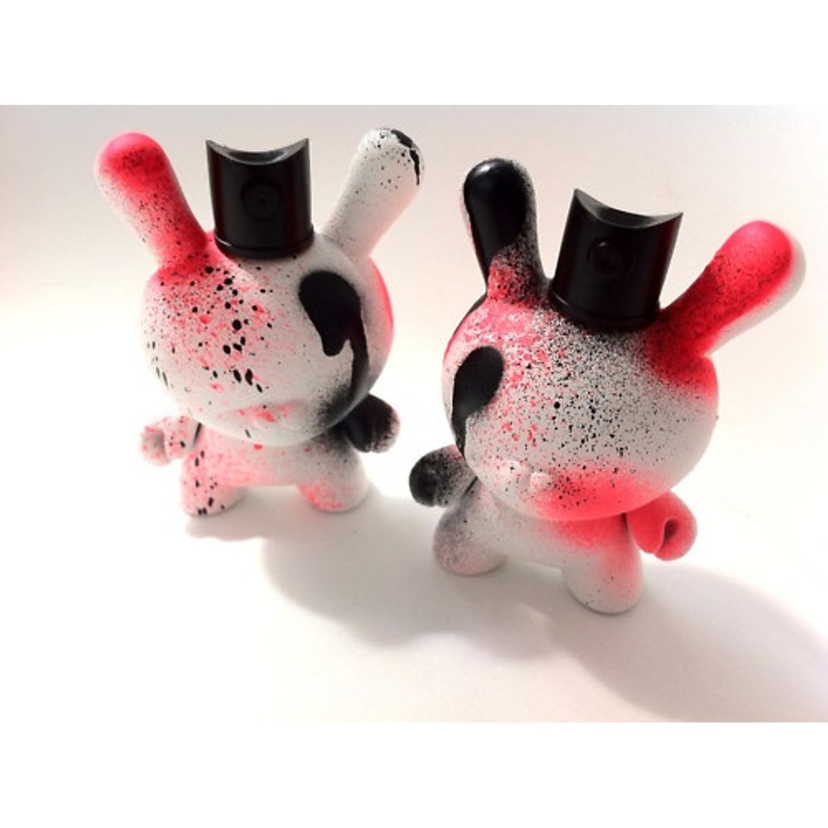 The toy is based on a rabbit figure with distinctive tubular ears. The origin of the name Dunny came from a combination of street slang and one of the early "Devil Bunny" prototypes. The Dunny is sold in four sizes - 3", 5", 8" and 20". The toy has three points of articulation; a 360 degree rotational head and two arms. An artist card or sticker is also included with the 3" Dunny from a series. Most 3" Dunnys and some 8" Dunnys are normally sold as "blind assortment"; the figure is packaged inside a sealed foil wrapper, such that the buyer is not able to see which figure and accessories they are buying. Sealing the figure prevents people from opening and peeking in the boxes and buying only the figures they want. Most Dunnys are packaged inside a clear plastic bag in addition to the foil wrapper. In the second-hand market, this assures the buyer that the article was never on display and is in a "new" condition. With the success of vinyl toys as a medium for expression, many fans and artists have put their own design onto blank Dunnys.