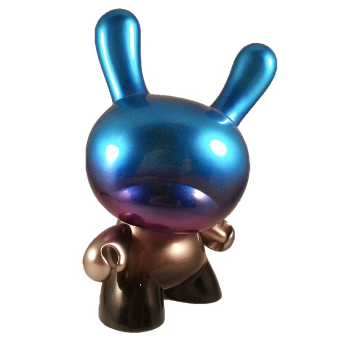 The toy is based on a rabbit figure with distinctive tubular ears. The origin of the name Dunny came from a combination of street slang and one of the early "Devil Bunny" prototypes. The Dunny is sold in four sizes - 3", 5", 8" and 20". The toy has three points of articulation; a 360 degree rotational head and two arms. An artist card or sticker is also included with the 3" Dunny from a series. Most 3" Dunnys and some 8" Dunnys are normally sold as "blind assortment"; the figure is packaged inside a sealed foil wrapper, such that the buyer is not able to see which figure and accessories they are buying. Sealing the figure prevents people from opening and peeking in the boxes and buying only the figures they want. Most Dunnys are packaged inside a clear plastic bag in addition to the foil wrapper. In the second-hand market, this assures the buyer that the article was never on display and is in a "new" condition. With the success of vinyl toys as a medium for expression, many fans and artists have put their own design onto blank Dunnys.