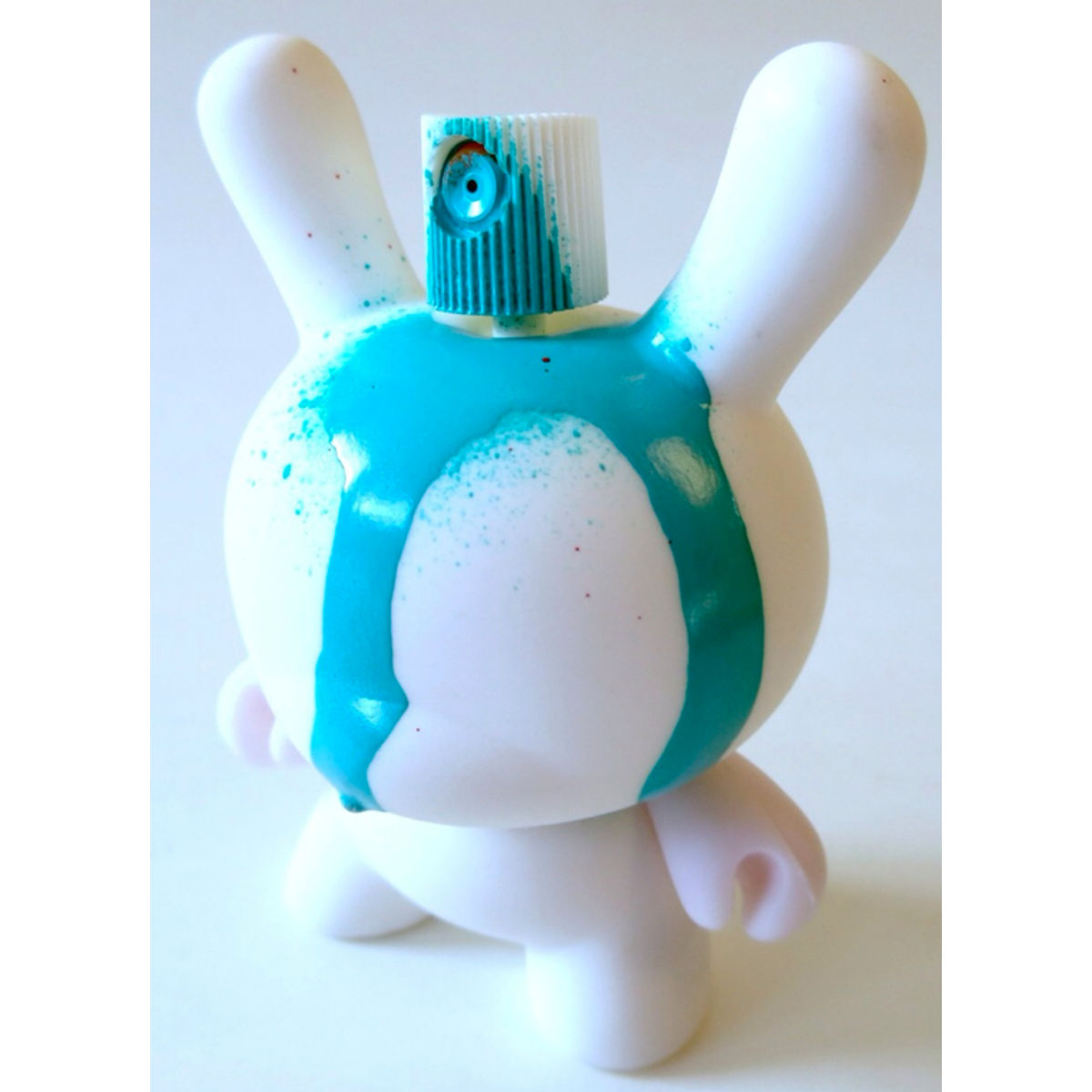 The toy is based on a rabbit figure with distinctive tubular ears. The origin of the name Dunny came from a combination of street slang and one of the early "Devil Bunny" prototypes. The Dunny is sold in four sizes - 3", 5", 8" and 20". The toy has three points of articulation; a 360 degree rotational head and two arms. An artist card or sticker is also included with the 3" Dunny from a series. Most 3" Dunnys and some 8" Dunnys are normally sold as "blind assortment"; the figure is packaged inside a sealed foil wrapper, such that the buyer is not able to see which figure and accessories they are buying. Sealing the figure prevents people from opening and peeking in the boxes and buying only the figures they want. Most Dunnys are packaged inside a clear plastic bag in addition to the foil wrapper. In the second-hand market, this assures the buyer that the article was never on display and is in a "new" condition. With the success of vinyl toys as a medium for expression, many fans and artists have put their own design onto blank Dunnys.