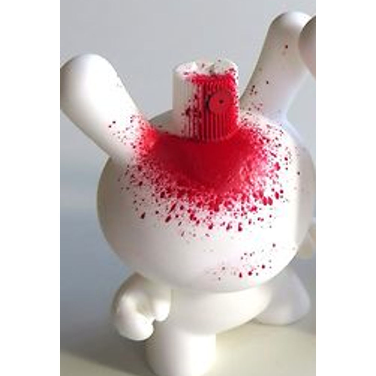 The toy is based on a rabbit figure with distinctive tubular ears. The origin of the name Dunny came from a combination of street slang and one of the early "Devil Bunny" prototypes. The Dunny is sold in four sizes - 3", 5", 8" and 20". The toy has three points of articulation; a 360 degree rotational head and two arms. An artist card or sticker is also included with the 3" Dunny from a series. Most 3" Dunnys and some 8" Dunnys are normally sold as "blind assortment"; the figure is packaged inside a sealed foil wrapper, such that the buyer is not able to see which figure and accessories they are buying. Sealing the figure prevents people from opening and peeking in the boxes and buying only the figures they want. Most Dunnys are packaged inside a clear plastic bag in addition to the foil wrapper. In the second-hand market, this assures the buyer that the article was never on display and is in a "new" condition. With the success of vinyl toys as a medium for expression, many fans and artists have put their own design onto blank Dunnys.