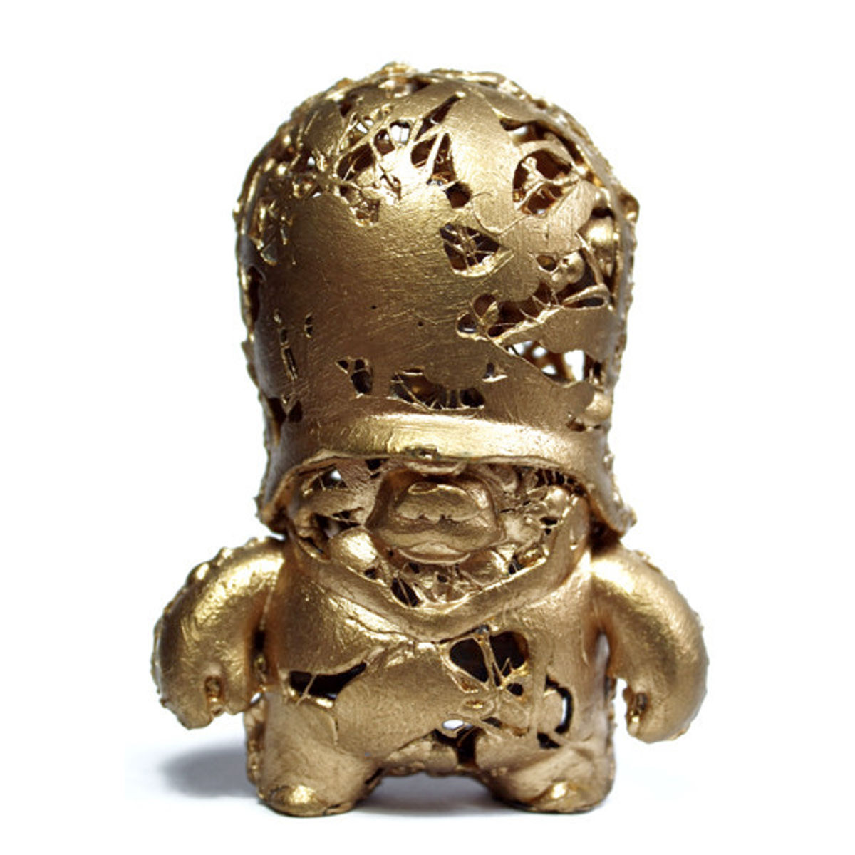 The Teddy Troops had been around in the streets for a while before they also turned into a 3D vinyl toy in 2004. First of all Flying Förtress started in 2002 to get up with his chrome Trooper icon. Trying to use an easier readable illustrative symbol instead of doing the classic coded graffiti letters and tags that he had been doing before since 1989. Together with the chrome pieces there have stickers also been seen around in the streets since 2002. Handpainted or silkscreend ones with a hand-drawn finish on "free" post stickers and series of offset printed stickers.