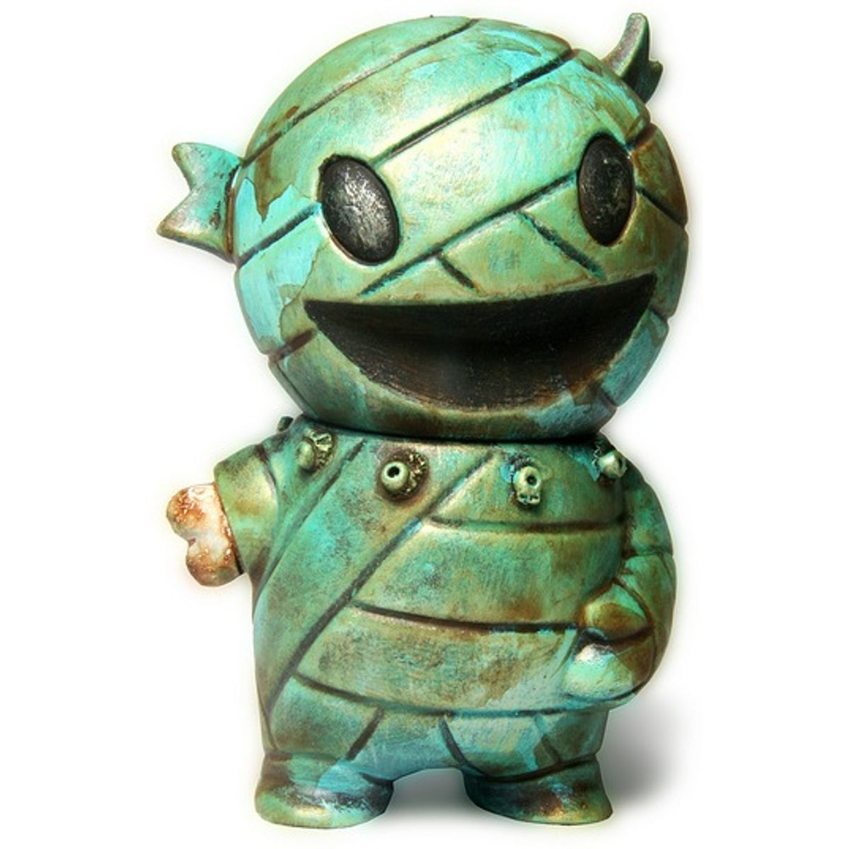 DrilOne is a New Yorker at heart and a San Franciscan by location. On the East Coast, he painted only 2d work; on the west coast, toys and other 3D objects are his preferred canvas. He began working with vinyl in 2005, and soon after stumbled upon the formula that would serve as his signature style. By taking a playful object and distressing it to, quite literally, its breaking point, Dril comments on oblivion, transience, and re-birth. Dril says simply: “I love rust, decay, history, ruins, military, skulls, vintage, and all this makes me who I am.” Art is in Dril’s blood. The son of a painter, he cannot imagine or remember life without drawing. He is a veteran of the New York City public school system and spent most of his life amidst the city’s chaos and creativity. His upbringing and admiration for contemporary, pop and graffiti artists are reflected in his work. The many inspirations that inform his art include abandoned amusement parks, insane asylums and old military bunkers. Dril has made a name for himself with his instantly recognizable visual expression, and his sought-after figures can be seen in art galleries and collections around the world. Standouts among