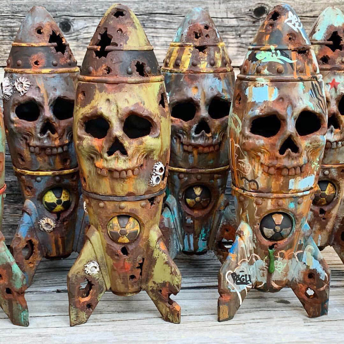 DrilOne is a New Yorker at heart and a San Franciscan by location. On the East Coast, he painted only 2d work; on the west coast, toys and other 3D objects are his preferred canvas. He began working with vinyl in 2005, and soon after stumbled upon the formula that would serve as his signature style. By taking a playful object and distressing it to, quite literally, its breaking point, Dril comments on oblivion, transience, and re-birth. Dril says simply: “I love rust, decay, history, ruins, military, skulls, vintage, and all this makes me who I am.” Art is in Dril’s blood. The son of a painter, he cannot imagine or remember life without drawing. He is a veteran of the New York City public school system and spent most of his life amidst the city’s chaos and creativity. His upbringing and admiration for contemporary, pop and graffiti artists are reflected in his work. The many inspirations that inform his art include abandoned amusement parks, insane asylums and old military bunkers. Dril has made a name for himself with his instantly recognizable visual expression, and his sought-after figures can be seen in art galleries and collections around the world. Standouts among