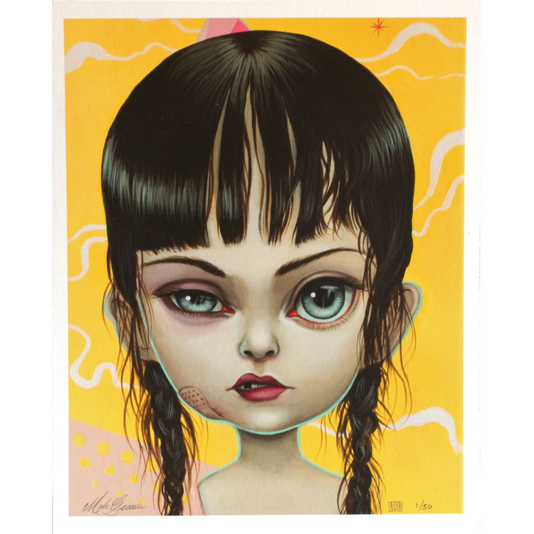 Mab Graves is a pop-surrealist artist/illustrator. She spends her days working in her studio with her partner (Fashion Photographer, Larry Endicott) and his cat: Capt’n Pepper – her sworn enemy. Her work is inspired deeply by fairy tales and old classic literature. She blames this on her parents who unrelentingly read aloud to her and her three sisters as small impressionable children. Although her age and ethnicity are currently unknown, she does have powder pink hair and is at least 7years old. Her favorite colors are glitter and clear. And every color. Her dream pet would be a yellow fruit bat, or a nice old hedgehog with an eye patch. For information about upcoming shows and projects, to see sketches or previews of new work you can go to Mab’s facebook page here: Giclée (pronounced "zhee-clay") is a neologism for the process of making fine art prints from a digital source using ink-jet printing. The word "giclée" is derived from the French language word "le gicleur" meaning "nozzle", or more specifically "gicler" meaning "to squirt, spurt, or spray". It was coined in 1991 by Jack Duganne, a printmaker working in the field, to represent any inkjet-based digital print used as fine art. The intent of that name was to distinguish commonly known industrial "Iris proofs" from the type of fine art prints artists were producing on those same types of printers. The name was originally applied to fine art prints created on Iris printers in a process invented in the early 1990s but has since come to mean any high quality ink-jet print and is often used in galleries and print shops to denote such prints.