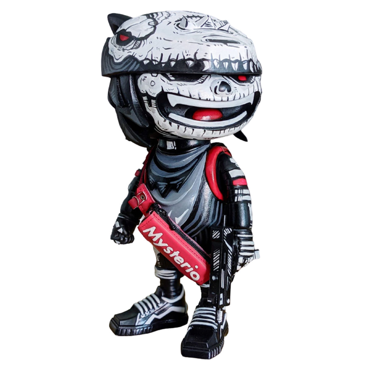 Frank Mysterio is a Mexican artist and designer known for his bold, psychedelic, and graffiti-inspired art toys. His work blends elements of Mexican folklore, lucha libre, lowbrow art, and street culture, resulting in eye-catching, highly detailed designs that often feature skulls, masks, and intricate patterns. Mysterio is particularly recognized for his use of bright neon colors, airbrushed gradients, and tattoo-like linework, giving his figures a unique and unmistakable aesthetic. He frequently customizes sofubi (soft vinyl) toys, adding his signature artistic flair to established platforms while also creating original designs. His work has gained international recognition in the designer toy scene, leading to collaborations with various toy companies and artists. Mysterio’s fusion of Mexican traditions with contemporary urban art makes him a standout figure in the global art toy movement.