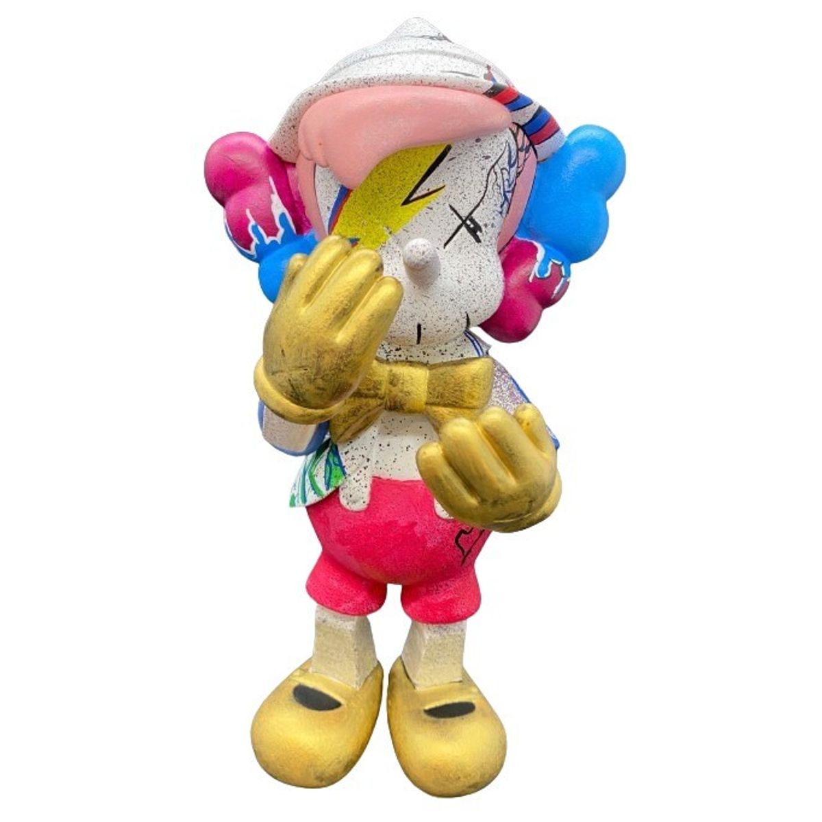 KAWS’ Companion is one of the most iconic figures created by the artist Brian Donnelly, known as KAWS. The Companion character features a cartoon-like figure with a skull-shaped head, crossed-out eyes, and gloved hands, resembling classic animation characters but with a distinct melancholic and introspective expression. Since its debut in the late 1990s, Companion has been released in various forms, including vinyl toys, large-scale sculptures, and limited-edition collaborations. The character is often depicted in different poses, such as covering its face in distress, reclining, floating, or standing tall, reflecting themes of isolation, vulnerability, and contemplation.