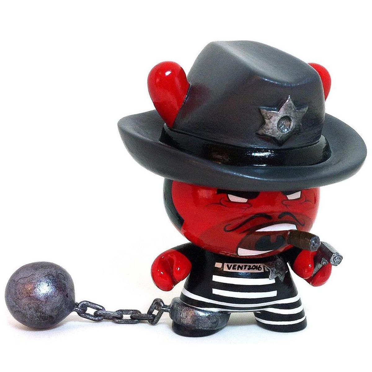 The toy is based on a rabbit figure with distinctive tubular ears. The origin of the name Dunny came from a combination of street slang and one of the early "Devil Bunny" prototypes. The Dunny is sold in four sizes - 3", 5", 8" and 20". The toy has three points of articulation; a 360 degree rotational head and two arms. An artist card or sticker is also included with the 3" Dunny from a series. Most 3" Dunnys and some 8" Dunnys are normally sold as "blind assortment"; the figure is packaged inside a sealed foil wrapper, such that the buyer is not able to see which figure and accessories they are buying. Sealing the figure prevents people from opening and peeking in the boxes and buying only the figures they want. Most Dunnys are packaged inside a clear plastic bag in addition to the foil wrapper. In the second-hand market, this assures the buyer that the article was never on display and is in a "new" condition. With the success of vinyl toys as a medium for expression, many fans and artists have put their own design onto blank Dunnys. Igor Ventura is an art director, motion designer, illustrator and customizer from Brazil. He started his career working in the account and planning departments of advertising agencies while still in college. Before his graduation in 2001, he decided to focus on design and started working in the creative department. Today, he is a motion designer in an audiovisual studio in Sao Paulo, and an art toy designer and customizer on his spare time. Igor ranked 3rd place in in the Kidrobot Munnyworld: MunnyMunth Contest in 2010, was a finalist in the CE Planet Toy Global Contest I in 2010, was a finalist in the Designer Toy Awards 2015 in the Custom of the year category, had a production piece in Blankie series 1 by Aartin, a Dunny in the Art of War series by Kidrobot and 3 different designs in Android series 6 by Dead Zebra.