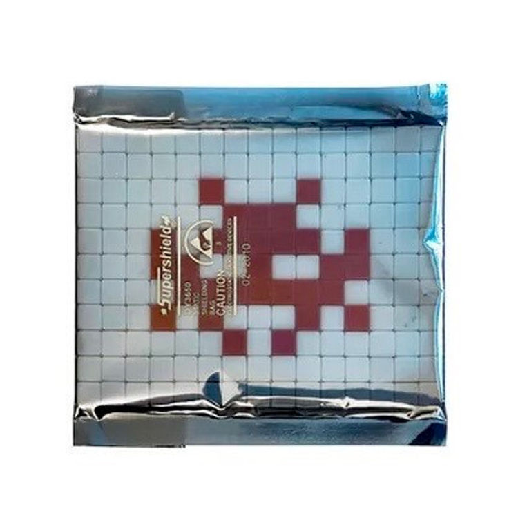 The artist known as Invader was born in 1969 in Paris, France, the city where he is currently based. His work illustrates the overwhelming effect technology has had on contemporary culture while also critiquing it, using the ancient and traditional technique of mosaics to simulate digital pixels. Referencing the 1978 Atari video game, the artist began placing mosaics featuring Space Invaders on the streets of Paris in the late 1990s. Joined by Pac Man ghosts and other popular 8-bit characters, the works soon became a familiar sight to encounter in any urban environment. Invader’s use of tile to create street art, rather than paint or stencil, is not only a unique choice of medium—it also emphasizes his commentary of how digital information networks have affected and transformed our society. Sightings of the work have spread over the last ten years on a global scale as the artist continues invading public spaces across five continents. Currently, Invader’s work can be found on the streets of over forty cities, worldwide. Recently, Invader’s work has evolved, incorporating Rubik’s Cubes in addition to tiles, creating 3D sculptures that echo imagery found in his two-dimensional work. Invader is known to be the originator of this