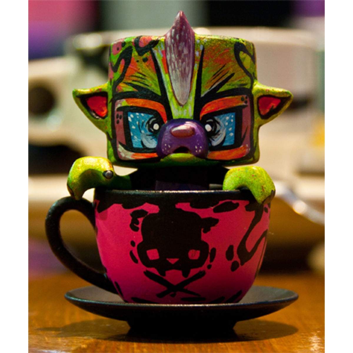 Lunartik in a Cup of Tea is a designer toy series created by British artist Matt JOnes (aka Lunartik). These collectible vinyl figures feature a stylized character sitting inside a teacup, blending a whimsical and minimalist design with a playful tea-themed concept. The original Lunartik in a Cup of Tea figure is a small, round-headed character with a simple face, often depicted with a tea bag tag hanging from the cup. The series includes Mini-Teas (smaller versions with various colors and flavors) and special edition teas, featuring collaborations, custom designs, and exclusive releases. This is my world! Colour and fluorescence! Writer, designer, customizer!