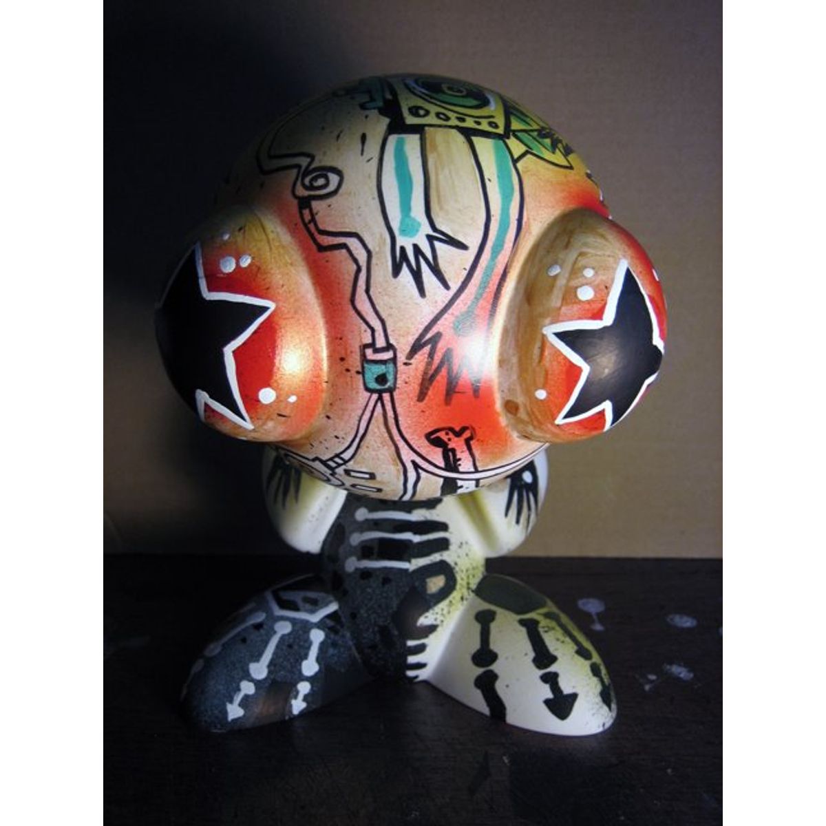 Jim Mahfood aka Food One is a freelance artist working professionally in the fields of illustration, advertising, comic books, murals, fine art, animation, live art in nightclubs, and custom body-painting. He has worked for every major comic book company and his illustrations have appeared in such publications as Playboy, Spin, Spectrum Illustration Annual, Star Wars Gamer, URB, the Hollywood Reporter, BPM, the Phoenix New Times, Mad Magazine, Heavy Metal, and more. Highlights of his career include illustrating director Kevin Smith's "Clerks" comics, handling the art chores on the entire ad campaign for Colt 45 malt liquor in 2007-08, painting the murals on Comedy Central's "Sarah Silverman Show", illustrating the "Kickpuncher" comic book that was included in the Season 1 DVD of NBC's hit show, "Community", illustrating and art directing reggae legend Ziggy Marley's THE LEGEND Trickster...Warrior...Revolutionary. Sick of living under the yoke of the Jade Emperor, The Monkey King staged a coup against the Kingdom of Heaven using his wits, his cunning and a very big stick. Individuality in the face of conformity is his legacy. THE TOYS In his honor we built this temple, filling it with toys that embody his rebellious and creative spirit. Cast from the hearts and minds of independent artists from around the world, these "Designer Toys" or "Art Toys" are part of an ever-growing international phenomenon. In an age where mega-conglomerates churn out mass-produced hunks of cheap plastic, these limited production-run collectibles are revolutionizing the way people think about art and toys.