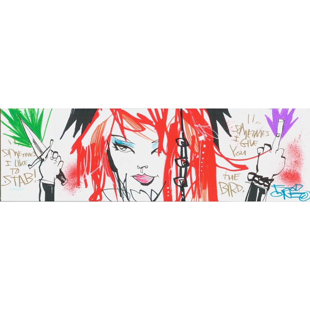 Jim Mahfood aka Food One is a freelance artist working professionally in the fields of illustration, advertising, comic books, murals, fine art, animation, live art in nightclubs, and custom body-painting. He has worked for every major comic book company and his illustrations have appeared in such publications as Playboy, Spin, Spectrum Illustration Annual, Star Wars Gamer, URB, the Hollywood Reporter, BPM, the Phoenix New Times, Mad Magazine, Heavy Metal, and more. Highlights of his career include illustrating director Kevin Smith's "Clerks" comics, handling the art chores on the entire ad campaign for Colt 45 malt liquor in 2007-08, painting the murals on Comedy Central's "Sarah Silverman Show", illustrating the "Kickpuncher" comic book that was included in the Season 1 DVD of NBC's hit show, "Community", illustrating and art directing reggae legend Ziggy Marley's Mixed media tends to refer to a work of visual art that combines various traditionally distinct visual art media. For example, a work on canvas that combines paint, ink, and collage could properly be called a "mixed media" work. When creating a painted or photographed work using mixed media it is important to choose the layers carefully and allow enough drying time between the layers to ensure the final work will have integrity. If many different media are used it is equally important to choose a sturdy foundation upon which the different layers are imposed. Many interesting effects can be achieved by using mixed media. Often, found objects are used in conjunction with traditional artist media, such as paints and graphite, to express a meaning in the everyday life. In this manner, many different elements of art become more flexible than with traditional artist media.