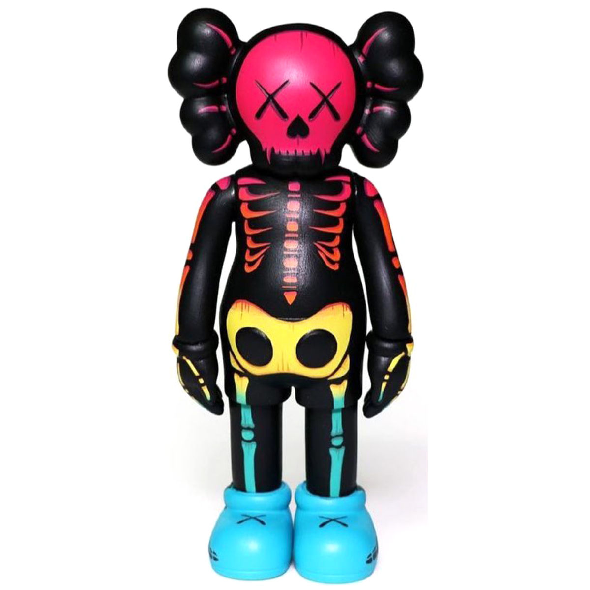 KAWS’ Companion is one of the most iconic figures created by the artist Brian Donnelly, known as KAWS. The Companion character features a cartoon-like figure with a skull-shaped head, crossed-out eyes, and gloved hands, resembling classic animation characters but with a distinct melancholic and introspective expression. Since its debut in the late 1990s, Companion has been released in various forms, including vinyl toys, large-scale sculptures, and limited-edition collaborations. The character is often depicted in different poses, such as covering its face in distress, reclining, floating, or standing tall, reflecting themes of isolation, vulnerability, and contemplation.