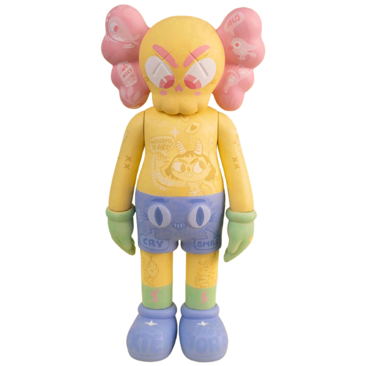 KAWS’ Companion is one of the most iconic figures created by the artist Brian Donnelly, known as KAWS. The Companion character features a cartoon-like figure with a skull-shaped head, crossed-out eyes, and gloved hands, resembling classic animation characters but with a distinct melancholic and introspective expression. Since its debut in the late 1990s, Companion has been released in various forms, including vinyl toys, large-scale sculptures, and limited-edition collaborations. The character is often depicted in different poses, such as covering its face in distress, reclining, floating, or standing tall, reflecting themes of isolation, vulnerability, and contemplation. Strangecat Toys is a designer toy store based in Tampa, Florida, specializing in urban vinyl toys, art toys, customs, plush toys, and more. Owned and operated by a husband and wife team, the store offers a curated selection of collectibles from both established and emerging artists. The physical store is located at 4338 S Manhattan Ave, Tampa, Florida 33611