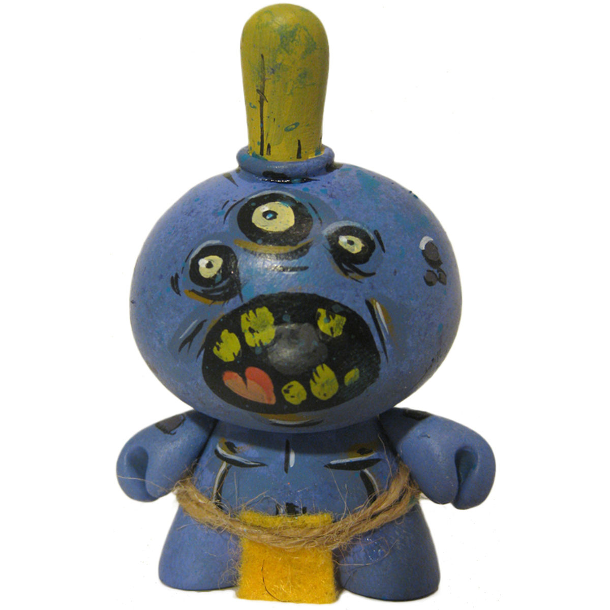 The toy is based on a rabbit figure with distinctive tubular ears. The origin of the name Dunny came from a combination of street slang and one of the early "Devil Bunny" prototypes. The Dunny is sold in four sizes - 3", 5", 8" and 20". The toy has three points of articulation; a 360 degree rotational head and two arms. An artist card or sticker is also included with the 3" Dunny from a series. Most 3" Dunnys and some 8" Dunnys are normally sold as "blind assortment"; the figure is packaged inside a sealed foil wrapper, such that the buyer is not able to see which figure and accessories they are buying. Sealing the figure prevents people from opening and peeking in the boxes and buying only the figures they want. Most Dunnys are packaged inside a clear plastic bag in addition to the foil wrapper. In the second-hand market, this assures the buyer that the article was never on display and is in a "new" condition. With the success of vinyl toys as a medium for expression, many fans and artists have put their own design onto blank Dunnys.