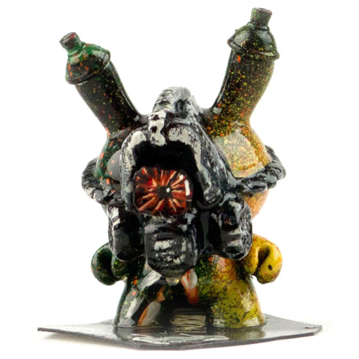 The toy is based on a rabbit figure with distinctive tubular ears. The origin of the name Dunny came from a combination of street slang and one of the early "Devil Bunny" prototypes. The Dunny is sold in four sizes - 3", 5", 8" and 20". The toy has three points of articulation; a 360 degree rotational head and two arms. An artist card or sticker is also included with the 3" Dunny from a series. Most 3" Dunnys and some 8" Dunnys are normally sold as "blind assortment"; the figure is packaged inside a sealed foil wrapper, such that the buyer is not able to see which figure and accessories they are buying. Sealing the figure prevents people from opening and peeking in the boxes and buying only the figures they want. Most Dunnys are packaged inside a clear plastic bag in addition to the foil wrapper. In the second-hand market, this assures the buyer that the article was never on display and is in a "new" condition. With the success of vinyl toys as a medium for expression, many fans and artists have put their own design onto blank Dunnys.