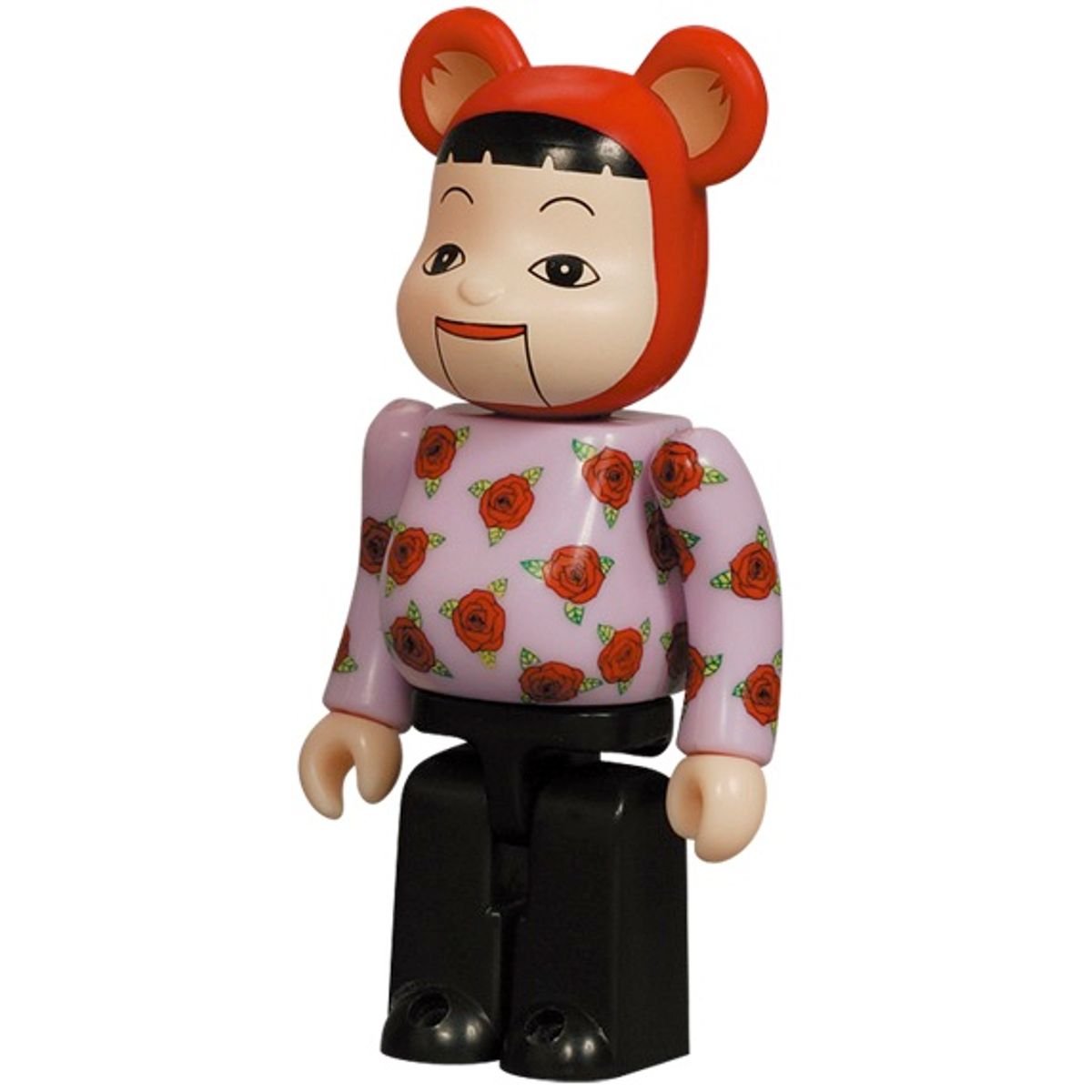 Bearbrick (rendered Be@rbrick) is a collectible toy designed and produced by the Japanese company MediCom Toy Incorporated. The name is derived from the fact that the figure is a cartoon-style representation of a bear and that it is a variation of MediCom's Kubrick design. The at sign in the place of the letter a is a visual device that is a part of the Bearbrick brand, and as such, a trademark of MediCom Toy. The first figure was released 27 May 2001 as a free gift to visitors of the World Character Convention 12 in Tokyo. Since then Bearbricks have been released in several different sizes using a variety of materials, including wood, felt, and glow-in-the-dark plastic. The standard size is seven centimeters high, and these figures are referred to as 100% Bearbricks. Other Bearbricks are named for their size relative to the standard: 50% are four centimeters high, 70% are five centimeters high, 400% are 28 centimeters high, and 1000% are 70 centimeters high. A 200% size chogokin Bearbrick has also been produced standing 14 centimeters tall. A 150% size "Bearbrick Light" has also been produced in 2012, standing 10.5 centimeters tall with a key chain on its head. Medicom Toy is a Japanese brand specializing in the creation of collection toys and figurines since 1996. It has been founded by Tatsuhiko Akashi. It all started with the Kubrick, a so -called standard figurine at the Lego and Playmobil border, a figurine made up of 9 blocks (in Japanese 九 (Kyū) means 9). This new format quickly was very successful and the kubricks will quickly take many licenses from Star Wars to the Planet of the Apes. In parallel Medicom Toy Produced toys of collecting art, sold in limited quantities and very quickly develops many ranges with the RAH (Real Action Heroes), the Mafex (Magical Action Figures Ex), the VCD (Vinyl Collectible Dolls) or even UDF (Ultra Detail Figure). But the planetary success will come with the Be@rbrick, an adaptation of the kubrick in a small bear version with a small plump belly. These figurines in the form of printed bear with different drawings and patterns will make the success of Medicom Toy putting the BE@RBRICK At the Pantheon of designer toy. Many artists and Brands have collaborated on this line of products, in particular Nike, Keith Haring or Kaws, but we also find characters from Movie theater from universes such