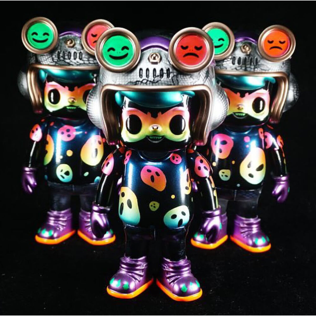 Self-produced art toys are designer collectibles created and manufactured independently by the artist or small teams without the backing of a large toy company or mass-market brand. These toys are often highly personal, artistic expressions and are usually made in limited runs. Key Characteristics include independent creation where the artist is in control of the entire process from concept, sculpting, and painting to production and packaging. These are usually made in small batches, often 10–100 pieces, which adds to their rarity, made using materials like resin, sofubi (Japanese soft vinyl), or 3D-printed components.