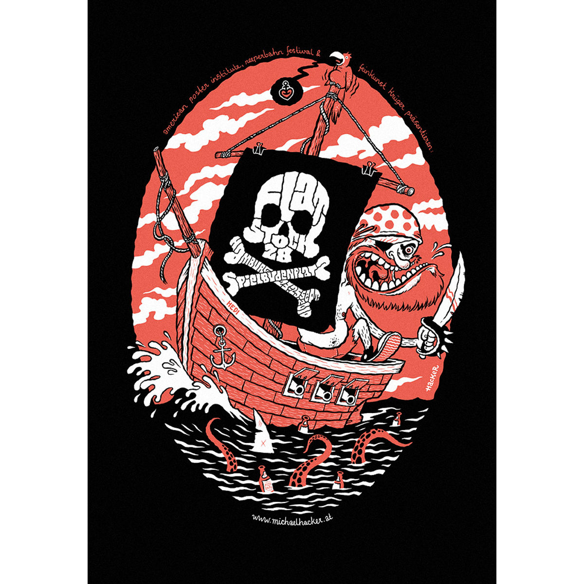 Michael Hacker is an illustrator and gig poster artist from Vienna who is part Atzgerei – a collaboration of five johnnies, who produce screen prints, gigposters, illustrations, graphic design, murals as well as installations and filmworks. Atzgerei was founded in 2005 in an abandoned factory site Vienna. He has done posters for bands such as Dinosaur Junior, Melvins and Queens of the Stoneage! Screen printing is a printing technique that uses a woven mesh to support an ink-blocking stencil. The attached stencil forms open areas of mesh that transfer ink or other printable materials which can be pressed through the mesh as a sharp-edged image onto a substrate. A roller or squeegee is moved across the screen stencil, forcing or pumping ink past the threads of the woven mesh in the open areas. Screen printing is also a stencil method of print making in which a design is imposed on a screen of silk or other fine mesh, with blank areas coated with an impermeable substance, and ink is forced through the mesh onto the printing surface. It is also known as silkscreen, seriography, and serigraph.
