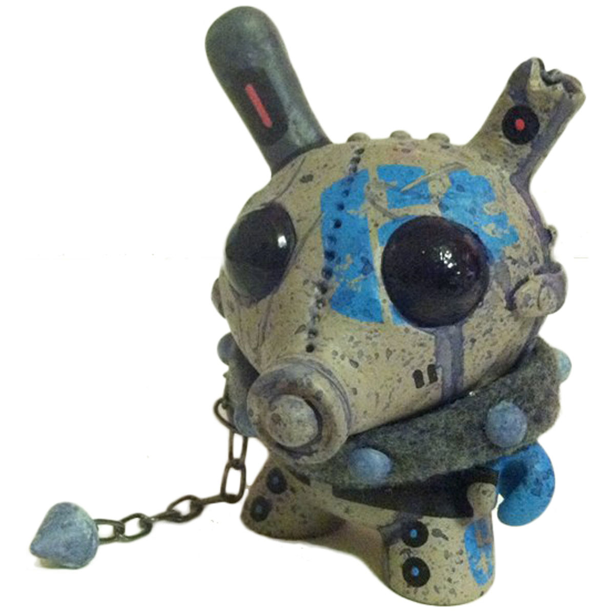 The toy is based on a rabbit figure with distinctive tubular ears. The origin of the name Dunny came from a combination of street slang and one of the early "Devil Bunny" prototypes. The Dunny is sold in four sizes - 3", 5", 8" and 20". The toy has three points of articulation; a 360 degree rotational head and two arms. An artist card or sticker is also included with the 3" Dunny from a series. Most 3" Dunnys and some 8" Dunnys are normally sold as "blind assortment"; the figure is packaged inside a sealed foil wrapper, such that the buyer is not able to see which figure and accessories they are buying. Sealing the figure prevents people from opening and peeking in the boxes and buying only the figures they want. Most Dunnys are packaged inside a clear plastic bag in addition to the foil wrapper. In the second-hand market, this assures the buyer that the article was never on display and is in a "new" condition. With the success of vinyl toys as a medium for expression, many fans and artists have put their own design onto blank Dunnys.