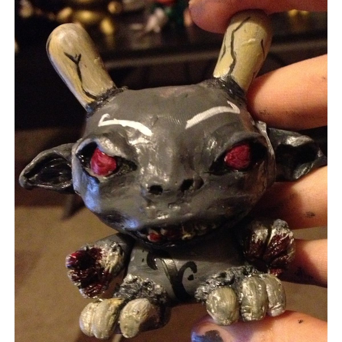 The toy is based on a rabbit figure with distinctive tubular ears. The origin of the name Dunny came from a combination of street slang and one of the early "Devil Bunny" prototypes. The Dunny is sold in four sizes - 3", 5", 8" and 20". The toy has three points of articulation; a 360 degree rotational head and two arms. An artist card or sticker is also included with the 3" Dunny from a series. Most 3" Dunnys and some 8" Dunnys are normally sold as "blind assortment"; the figure is packaged inside a sealed foil wrapper, such that the buyer is not able to see which figure and accessories they are buying. Sealing the figure prevents people from opening and peeking in the boxes and buying only the figures they want. Most Dunnys are packaged inside a clear plastic bag in addition to the foil wrapper. In the second-hand market, this assures the buyer that the article was never on display and is in a "new" condition. With the success of vinyl toys as a medium for expression, many fans and artists have put their own design onto blank Dunnys. I like to paint toys! I am a vinyl toy customiser from Manchester, i absolutely love collecting and customising vinyl toys! I absolutely love anything nature wise and little cute things! I am open to commissions, feel free to mail me; missa_@live.co.uk :) You can also see my work on; http://www.flickr.com/photos/91211479@N02/ http://www.etsy.com/shop/MissaVinyl