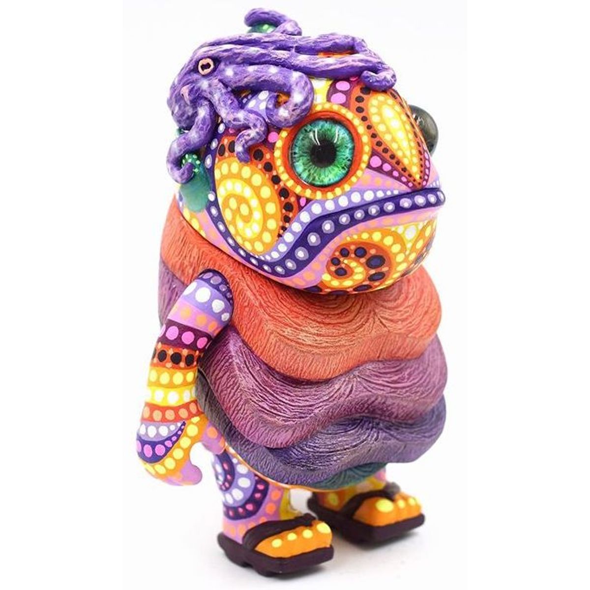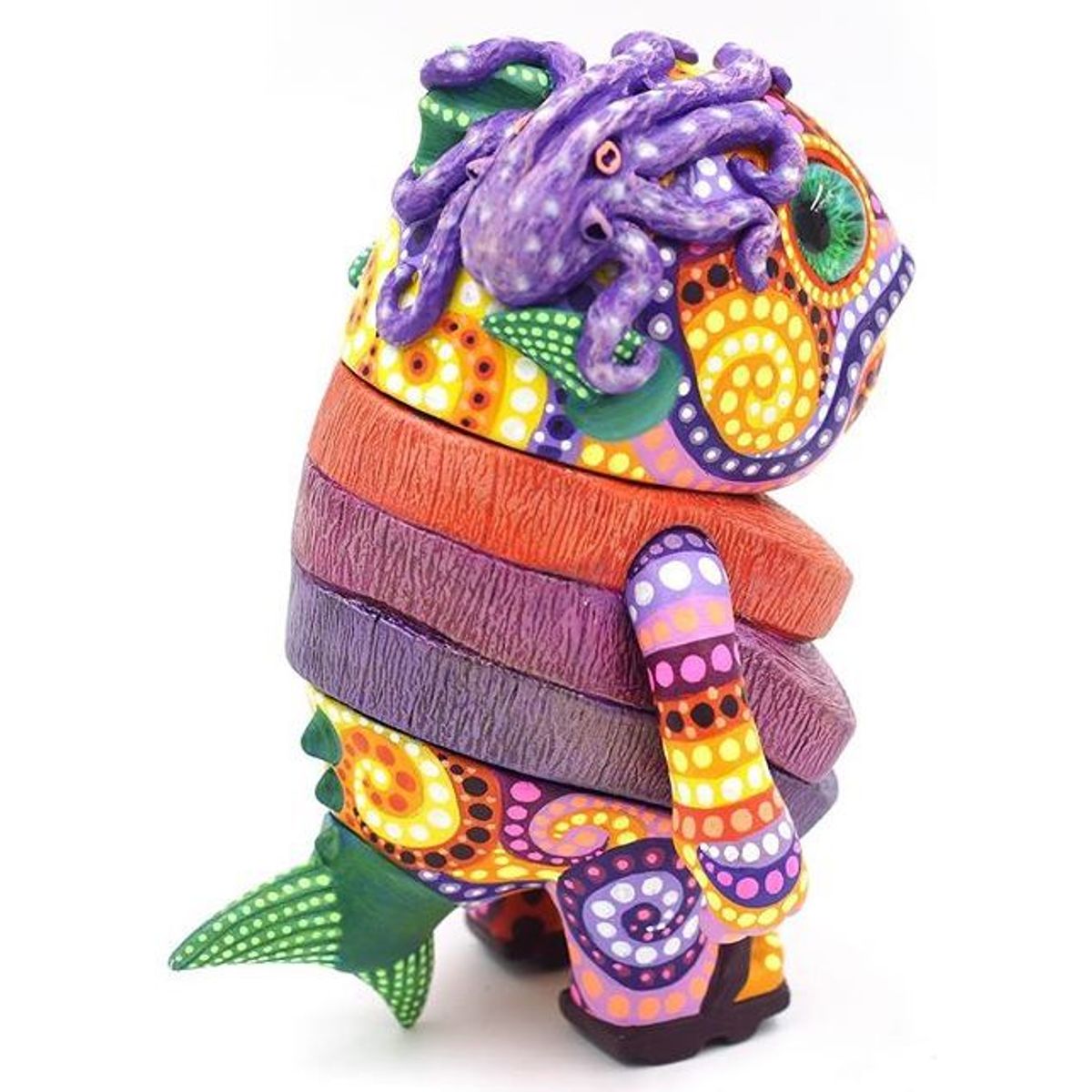 MP Gautheron is a French artist renowned for her vibrant and intricate paintings, sculptures, and custom art toys. Based in Rennes, France, she has been immersed in art from a young age, influenced by her mother, an art professor and painter. This early exposure led her to pursue formal studies in graphical design and plastic arts in Paris, culminating in a Master’s degree in plastic art/illustration.   Gautheron’s artistic universe blends elements of skulls, animals, nature, and intricate patterns. Her work often explores the natural process of death, aiming to help viewers accept it by embellishing and reinterpreting its imagery. She employs a mix of realistic depictions and fantastical configurations to tell stories, frequently using bold colors to infuse life into her subjects.