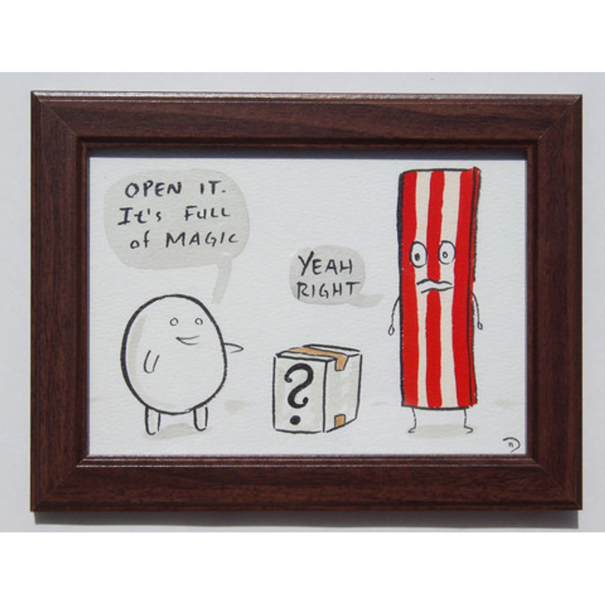 Mixed media tends to refer to a work of visual art that combines various traditionally distinct visual art media. For example, a work on canvas that combines paint, ink, and collage could properly be called a "mixed media" work. When creating a painted or photographed work using mixed media it is important to choose the layers carefully and allow enough drying time between the layers to ensure the final work will have integrity. If many different media are used it is equally important to choose a sturdy foundation upon which the different layers are imposed. Many interesting effects can be achieved by using mixed media. Often, found objects are used in conjunction with traditional artist media, such as paints and graphite, to express a meaning in the everyday life. In this manner, many different elements of art become more flexible than with traditional artist media. Welcome to the World of Mr Toast. Here you will find the life and adventures of Mr Toast and all his friends. Some of his friends include Lemonhead, Shaky Bacon, Mope the Onion and his best friend Joe the Egg. On this site you will find humurous animations, weekly comics and all manner of painted and drawn artwork. If you find yourself enjoying Mr Toast, you might want to order a book or a doll so you can enjoy him at home or share him with a friend. My name is Dan Goodsell and I'm the creator and artist of all the artwork you will find on this site. I live in Los Angeles, California and will be happy to answer any questions you might have about me or my artwork. Hours: Wed - Sun: 11 AM - 6 PM Mon & Tues: Closed