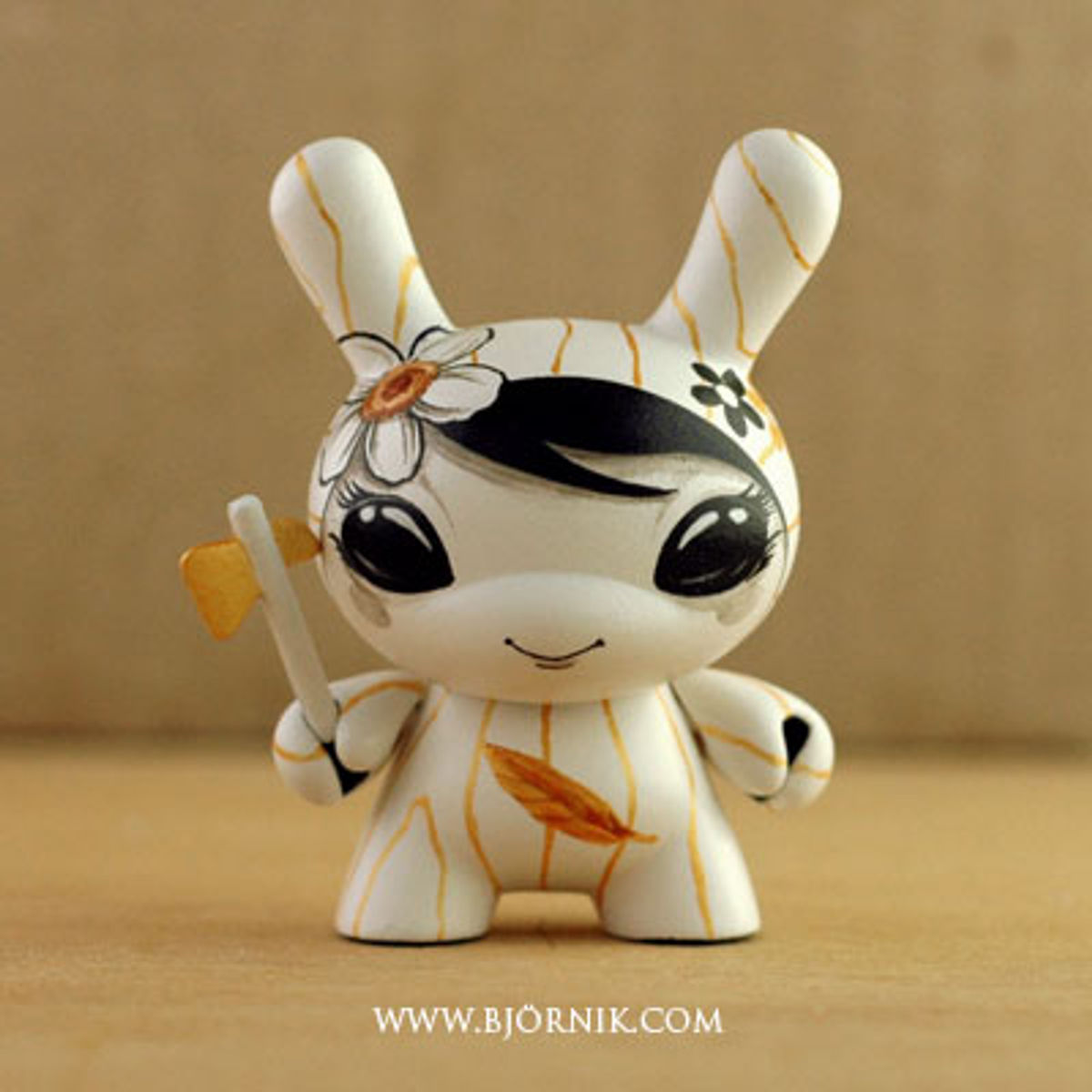 The toy is based on a rabbit figure with distinctive tubular ears. The origin of the name Dunny came from a combination of street slang and one of the early "Devil Bunny" prototypes. The Dunny is sold in four sizes - 3", 5", 8" and 20". The toy has three points of articulation; a 360 degree rotational head and two arms. An artist card or sticker is also included with the 3" Dunny from a series. Most 3" Dunnys and some 8" Dunnys are normally sold as "blind assortment"; the figure is packaged inside a sealed foil wrapper, such that the buyer is not able to see which figure and accessories they are buying. Sealing the figure prevents people from opening and peeking in the boxes and buying only the figures they want. Most Dunnys are packaged inside a clear plastic bag in addition to the foil wrapper. In the second-hand market, this assures the buyer that the article was never on display and is in a "new" condition. With the success of vinyl toys as a medium for expression, many fans and artists have put their own design onto blank Dunnys. I am more than an illustrator. I am a storyteller. My tales are a rich mixture of precious childhood memories and fairy tales. I weave together lines to celebrate the beauty and elegance of nature and human form. And sprinkled within that tapestry are touches of whimsy that bring to mind the wonderment of childhood and play. It is my way of rekindling youth with a wink and infinite mirth. An architect by training, I create works in pen and ink that are filled with intricate detail and influenced by stringent rules of design. The elements I choose often hold symbolic meaning, and I take care to piece them together like a jigsaw puzzle to tell an overall story. I have drawn millions of lines as an artist and have told many stories, from my initial scenes of houses to the Yahoo! Purplescape campaign to more experimental pieces that have won international competitions and garnered gallery exhibitions. But I still feel that I have many more stories to tell and a million more lines to draw.