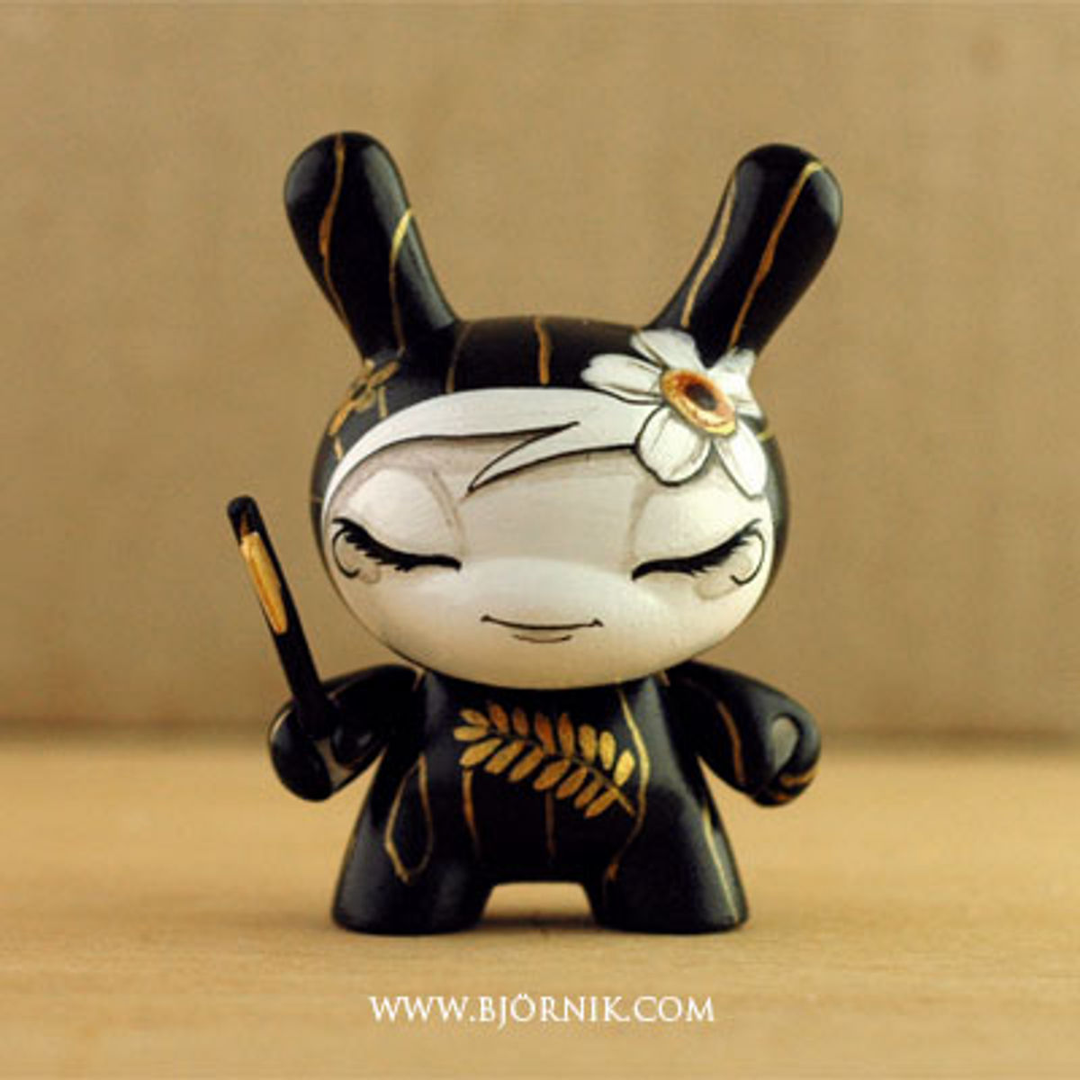 The toy is based on a rabbit figure with distinctive tubular ears. The origin of the name Dunny came from a combination of street slang and one of the early "Devil Bunny" prototypes. The Dunny is sold in four sizes - 3", 5", 8" and 20". The toy has three points of articulation; a 360 degree rotational head and two arms. An artist card or sticker is also included with the 3" Dunny from a series. Most 3" Dunnys and some 8" Dunnys are normally sold as "blind assortment"; the figure is packaged inside a sealed foil wrapper, such that the buyer is not able to see which figure and accessories they are buying. Sealing the figure prevents people from opening and peeking in the boxes and buying only the figures they want. Most Dunnys are packaged inside a clear plastic bag in addition to the foil wrapper. In the second-hand market, this assures the buyer that the article was never on display and is in a "new" condition. With the success of vinyl toys as a medium for expression, many fans and artists have put their own design onto blank Dunnys. I am more than an illustrator. I am a storyteller. My tales are a rich mixture of precious childhood memories and fairy tales. I weave together lines to celebrate the beauty and elegance of nature and human form. And sprinkled within that tapestry are touches of whimsy that bring to mind the wonderment of childhood and play. It is my way of rekindling youth with a wink and infinite mirth. An architect by training, I create works in pen and ink that are filled with intricate detail and influenced by stringent rules of design. The elements I choose often hold symbolic meaning, and I take care to piece them together like a jigsaw puzzle to tell an overall story. I have drawn millions of lines as an artist and have told many stories, from my initial scenes of houses to the Yahoo! Purplescape campaign to more experimental pieces that have won international competitions and garnered gallery exhibitions. But I still feel that I have many more stories to tell and a million more lines to draw.