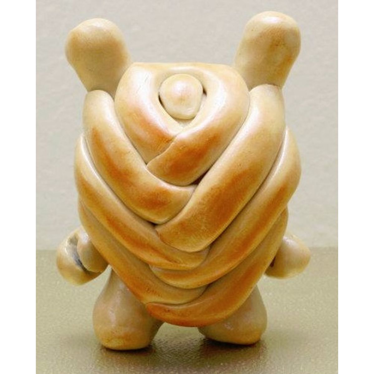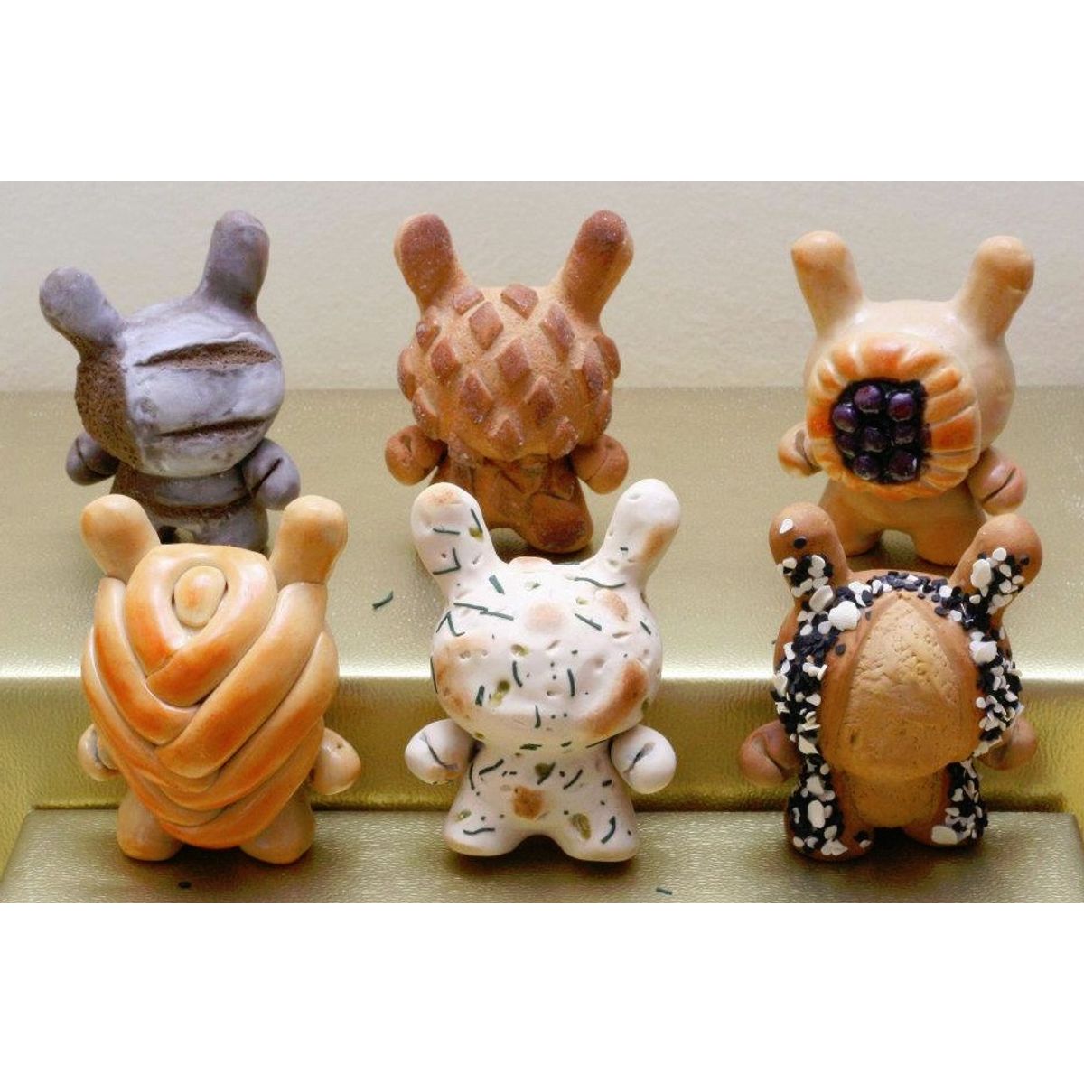 The toy is based on a rabbit figure with distinctive tubular ears. The origin of the name Dunny came from a combination of street slang and one of the early "Devil Bunny" prototypes. The Dunny is sold in four sizes - 3", 5", 8" and 20". The toy has three points of articulation; a 360 degree rotational head and two arms. An artist card or sticker is also included with the 3" Dunny from a series. Most 3" Dunnys and some 8" Dunnys are normally sold as "blind assortment"; the figure is packaged inside a sealed foil wrapper, such that the buyer is not able to see which figure and accessories they are buying. Sealing the figure prevents people from opening and peeking in the boxes and buying only the figures they want. Most Dunnys are packaged inside a clear plastic bag in addition to the foil wrapper. In the second-hand market, this assures the buyer that the article was never on display and is in a "new" condition. With the success of vinyl toys as a medium for expression, many fans and artists have put their own design onto blank Dunnys.
