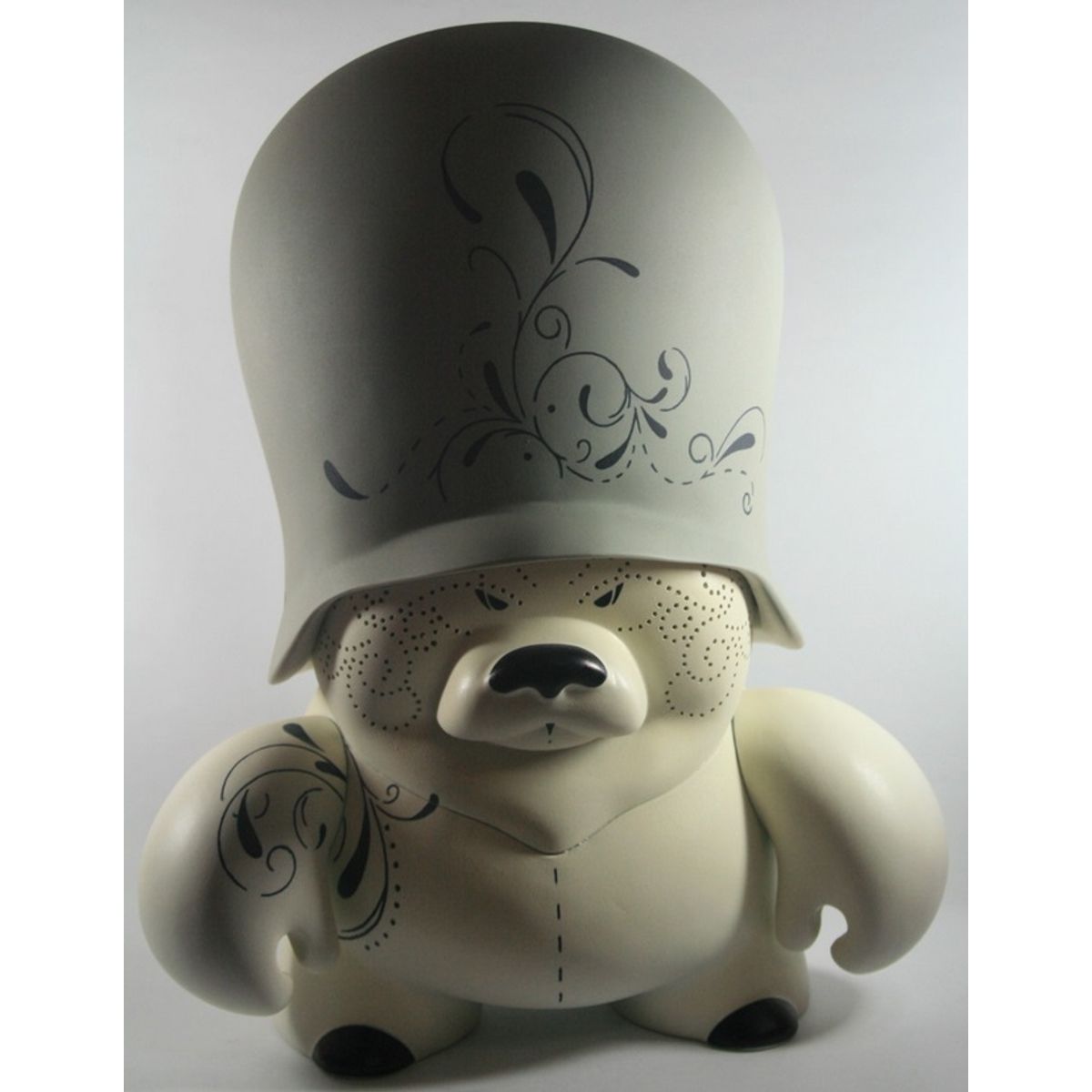 The Teddy Troops had been around in the streets for a while before they also turned into a 3D vinyl toy in 2004. First of all Flying Förtress started in 2002 to get up with his chrome Trooper icon. Trying to use an easier readable illustrative symbol instead of doing the classic coded graffiti letters and tags that he had been doing before since 1989. Together with the chrome pieces there have stickers also been seen around in the streets since 2002. Handpainted or silkscreend ones with a hand-drawn finish on "free" post stickers and series of offset printed stickers.