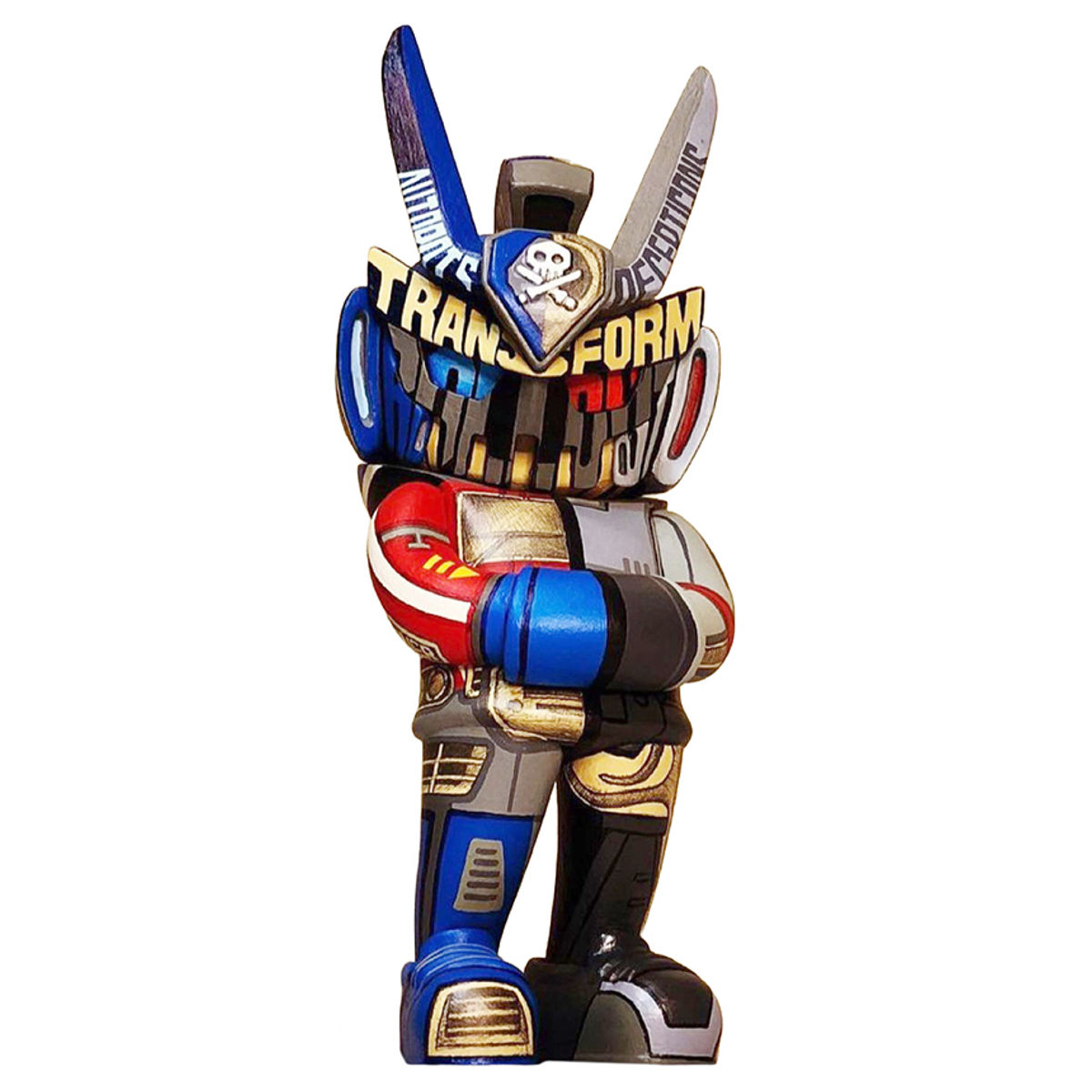 TEQ63 is a designer art toy created by QUICCS, a Filipino artist known for his fusion of streetwear, cyberpunk, and mecha aesthetics. The character is heavily influenced by Japanese mecha (especially Gundam), hip-hop culture, and urban graffiti, making it one of the most recognizable figures in the modern art toy scene. TEQ63 is typically depicted wearing a hoodie, a futuristic skull-like helmet with a visor, and sneakers, often resembling classic streetwear styles. The toy exudes a futuristic, dystopian vibe, with robotic or mechanical details that give it a tech-infused personality. Many releases include different colorways, special editions, and collaborations with brands like Adidas, Kidrobot, Martian Toys, and Devil Toys. TEQ63 figures are primarily produced by Martian Toys and come in multiple sizes and materials, including vinyl, resin, and sofubi (Japanese soft vinyl). Variants range from standard 6-inch figures to oversized, limited-edition versions, as well as exclusive artist collaborations featuring unique designs and colors