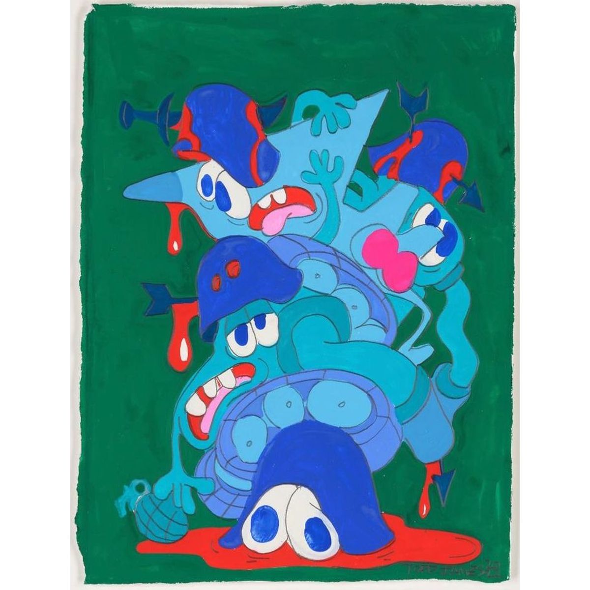 Todd James (a.k.a. REAS) is an internationally recognized artist who began his career as a child in the New York City subway system. He is a co-creator of the seminal Street Market exhibition at Deitch Projects in New York, which was selected for the Venice Biennale in 2001. James' work has also been shown at the Institute of Contemporary Art in Philadelphia, the Tate Museum in Liverpool, the Parco gallery in Tokyo, the Yerba Buena Center for the Arts in San Francisco, Collette in Paris, Lopez galleria in Madrid, Lazarides gallery in London, Todd James is represented by Gering Lopez Gallery in New York City and V1 Gallery in Copenhagen.Todd James lives and works in New York City. Acrylic paint is fast drying paint containing pigment suspension in acrylic polymer emulsion. Acrylic paints can be diluted with water, but become water-resistant when dry. Depending on how much the paint is diluted (with water) or modified with acrylic gels, media, or pastes, the finished acrylic painting can resemble a watercolor or an oil painting, or have its own unique characteristics not attainable with other media.