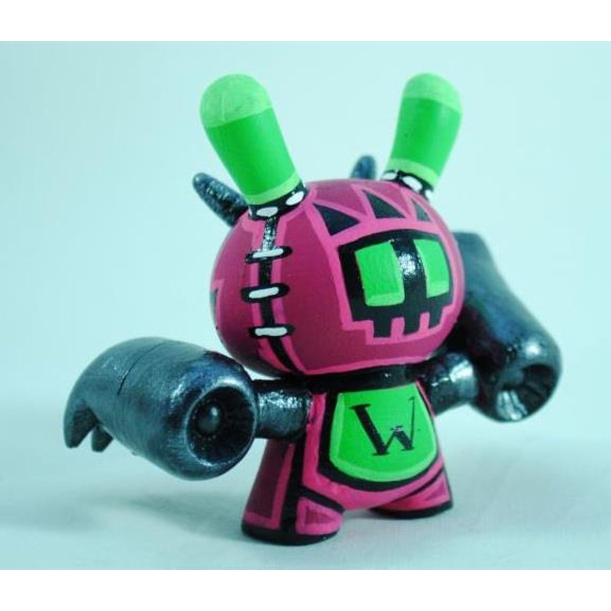 The toy is based on a rabbit figure with distinctive tubular ears. The origin of the name Dunny came from a combination of street slang and one of the early "Devil Bunny" prototypes. The Dunny is sold in four sizes - 3", 5", 8" and 20". The toy has three points of articulation; a 360 degree rotational head and two arms. An artist card or sticker is also included with the 3" Dunny from a series. Most 3" Dunnys and some 8" Dunnys are normally sold as "blind assortment"; the figure is packaged inside a sealed foil wrapper, such that the buyer is not able to see which figure and accessories they are buying. Sealing the figure prevents people from opening and peeking in the boxes and buying only the figures they want. Most Dunnys are packaged inside a clear plastic bag in addition to the foil wrapper. In the second-hand market, this assures the buyer that the article was never on display and is in a "new" condition. With the success of vinyl toys as a medium for expression, many fans and artists have put their own design onto blank Dunnys. RsinArt is a self taught artist living in Reading Pennsylvania. Early 2008 he decided to sit down and teach himself to paint, after having no previous training. With a constant need to improve, he has worked hard over the past 4 years to build a strong sense of personal style. Creating a world he calls "Whispers", and contains many creatures that often take shape on the three dimensional art toys and sculpts he's known for. Rsin's artistic vision has him working on a wide range of mediums from Designer Vinyl, Canvas, Watercolor, sculpture, ect. Since picking up a brush in January of 2008 Rsin has participated in over 50 shows, in galleries from New York City, San Francisco, Los Angeles, Montreal, Germany, Amsterdam, Detroit and more. As well as participated in big events like Art Basel Miami, New York Comic Con, San Diego Comic Con, Dcon, Wizard World and more. 2012 will see Rsin coming out with production work as well as starting to release limited resin toys and countinuing toward his goal of growing and learning as an artist with each new piece.