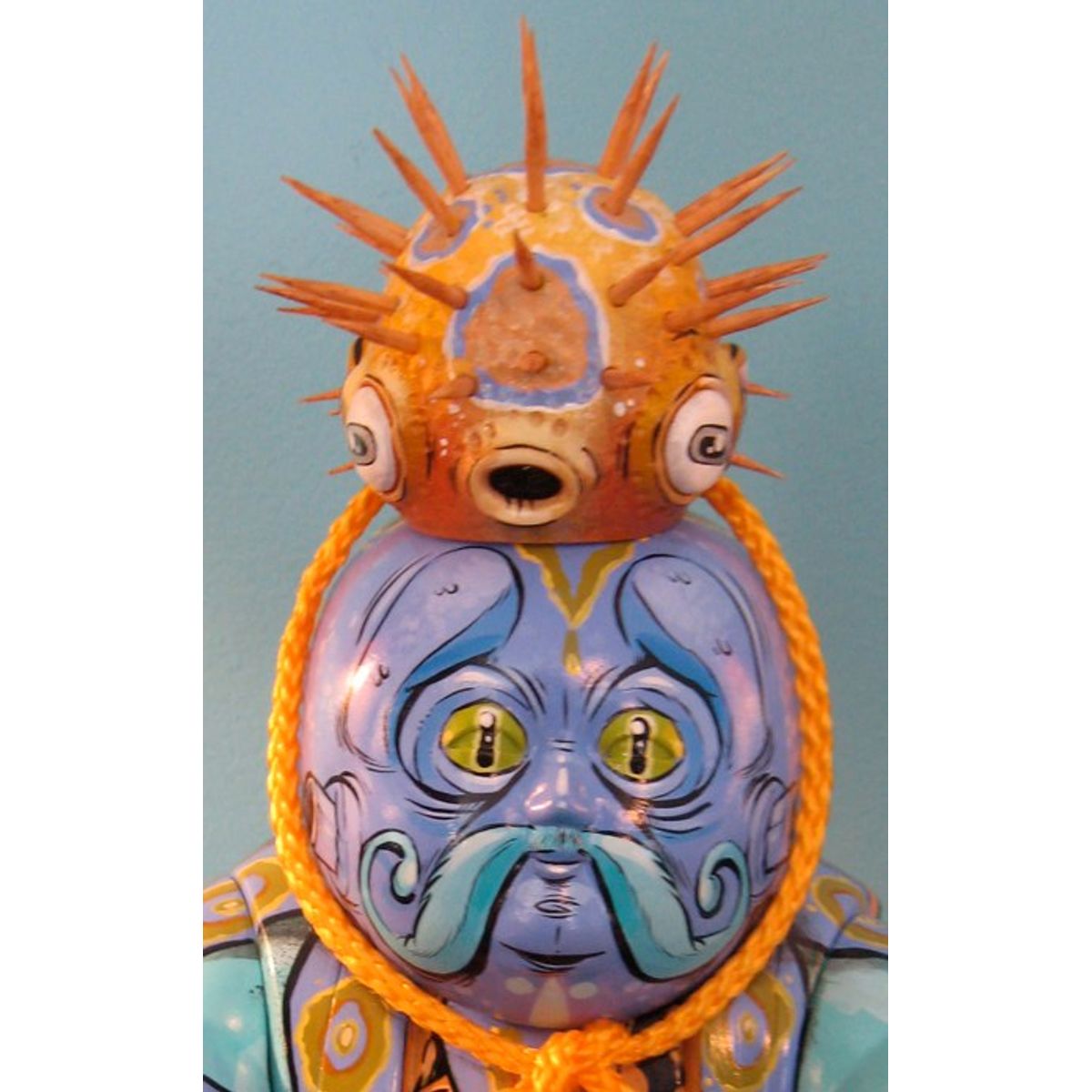 revere and inspire. Gosho doll, meaning from or of the Palace of Kyoto. The gosho doll is wearing a hat that represents it’s of noble descent or a member of the court, thus the hat is known as a court cap. The doll is carrying a rope which symbolized good luck. The figure would use the rope to pull in ships carrying treasure and other fortunes. Only 500 of each design. The gosho is 10” with three points of articulation. It is packaged in a unique window box, including spot UV coating for extra detail and a silver foil logo. Artists lined up so far are Frank Kozik, Dalek, Craola, Donny Miller, Tara McPherson, Nathan Cabrera, Tokidoki, Joe Hahn, Den (FUCT), JC, Plasticgod, COPE and many more. Donald Ross also known as “scribe” is 37 years old and currently lives in Kansas City, Missouri of the United States. The animated, public murals by Scribe are readily recognizable in Midtown Kansas City and throughout different part of the United States, Canada and down into Mexico where he has both painted murals and had gallery shows. Scribe incorporates a menagerie of animal characters developed over many years representing a particular, self-referential trait that he inserts in various scenarios. Scribe intersperses personal iconography, biblical and fairytale references, animation and metaphor in works intended as contemporary parables for public audiences, hence the use of his artist name and persona. Through accessible idiom and image, Scribe incorporates humor and play in the conveyance of serious messages regarding personal integrity, attainment of knowledge, and adventure. In the past five years scribe has been focused on a diverse career in art. He is currently the Art Director at Children’s Mercy Hospital in Kansas City where he does everything from graphic design, painting murals throughout four locations around the metro and managing large scale design and installation of a Terrazzo Flooring project.His most recent project was airbrushing the hospital owned Lifeflight Helicopter.Outside of his duties