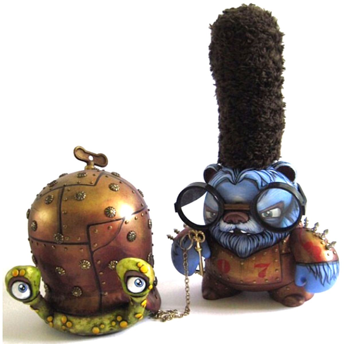 The Teddy Troops had been around in the streets for a while before they also turned into a 3D vinyl toy in 2004. First of all Flying Förtress started in 2002 to get up with his chrome Trooper icon. Trying to use an easier readable illustrative symbol instead of doing the classic coded graffiti letters and tags that he had been doing before since 1989. Together with the chrome pieces there have stickers also been seen around in the streets since 2002. Handpainted or silkscreend ones with a hand-drawn finish on "free" post stickers and series of offset printed stickers. Donald Ross also known as “scribe” is 37 years old and currently lives in Kansas City, Missouri of the United States. The animated, public murals by Scribe are readily recognizable in Midtown Kansas City and throughout different part of the United States, Canada and down into Mexico where he has both painted murals and had gallery shows. Scribe incorporates a menagerie of animal characters developed over many years representing a particular, self-referential trait that he inserts in various scenarios. Scribe intersperses personal iconography, biblical and fairytale references, animation and metaphor in works intended as contemporary parables for public audiences, hence the use of his artist name and persona. Through accessible idiom and image, Scribe incorporates humor and play in the conveyance of serious messages regarding personal integrity, attainment of knowledge, and adventure. In the past five years scribe has been focused on a diverse career in art. He is currently the Art Director at Children’s Mercy Hospital in Kansas City where he does everything from graphic design, painting murals throughout four locations around the metro and managing large scale design and installation of a Terrazzo Flooring project.His most recent project was airbrushing the hospital owned Lifeflight Helicopter.Outside of his duties